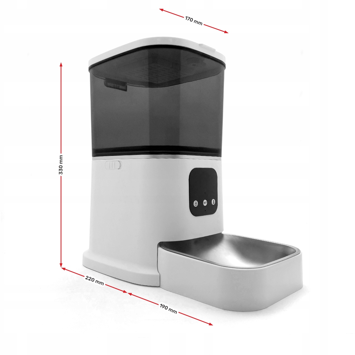 Контейнер для еды имеет достаточную емкость для много порций еды, поэтому вы сможете наполнять его реже. А если товар закончится, дозатор оповестит вас через приложение.