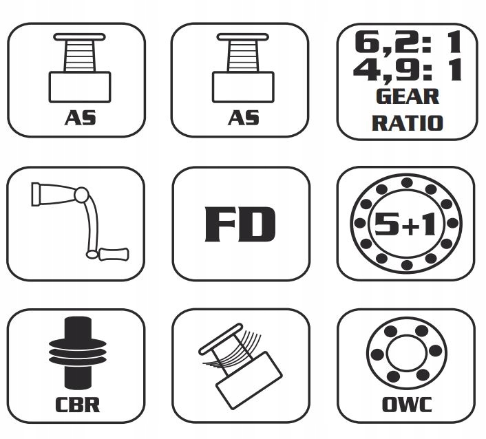 Катушка изготовлена из легких сплавов, оснащена пятью шарикоподшипниками плюс одним противореверсным подшипником, алюминиевой шпулей, точным задним фрикционом, расположенным в передняя часть корпуса, алюминиевая рукоятка, усиленная передняя часть.