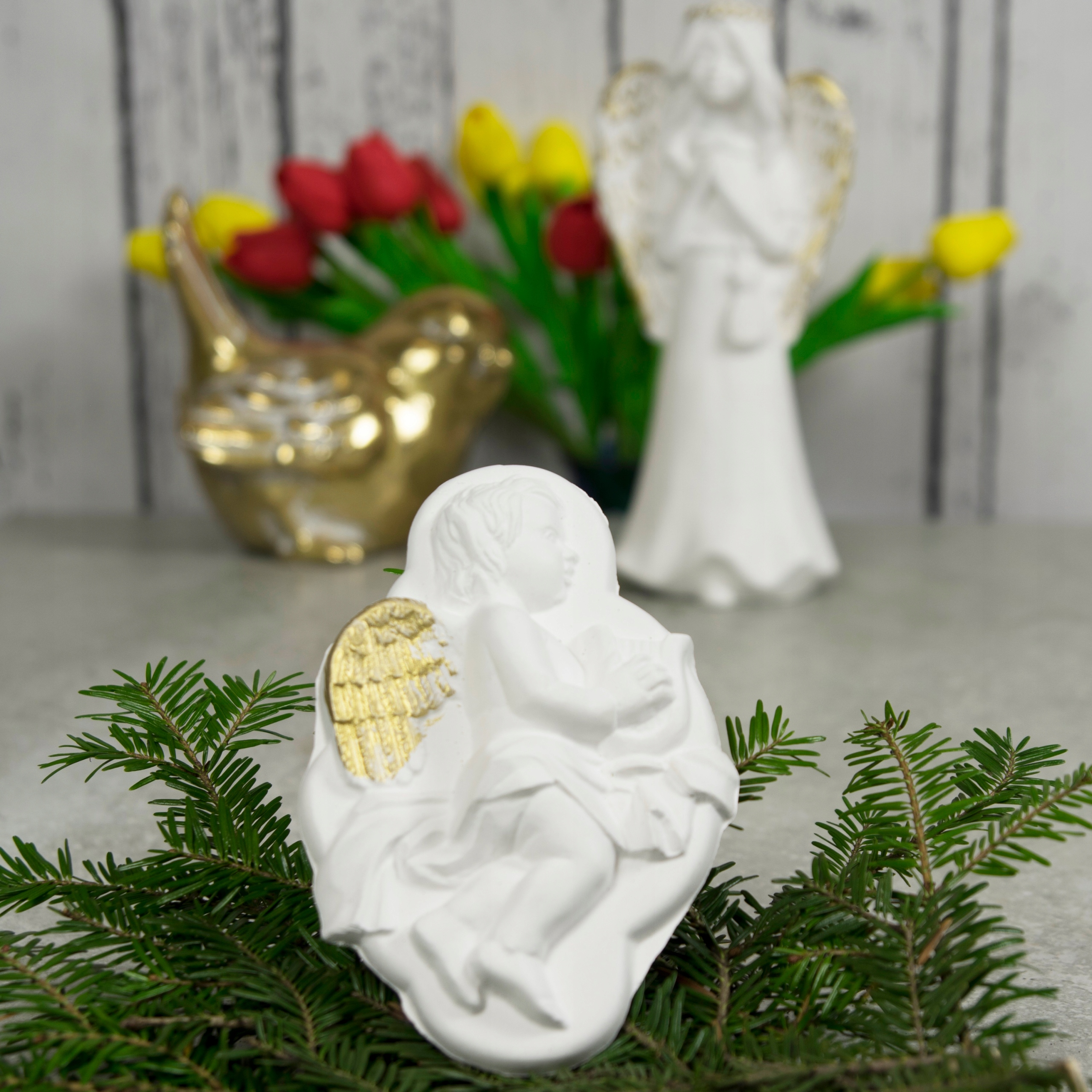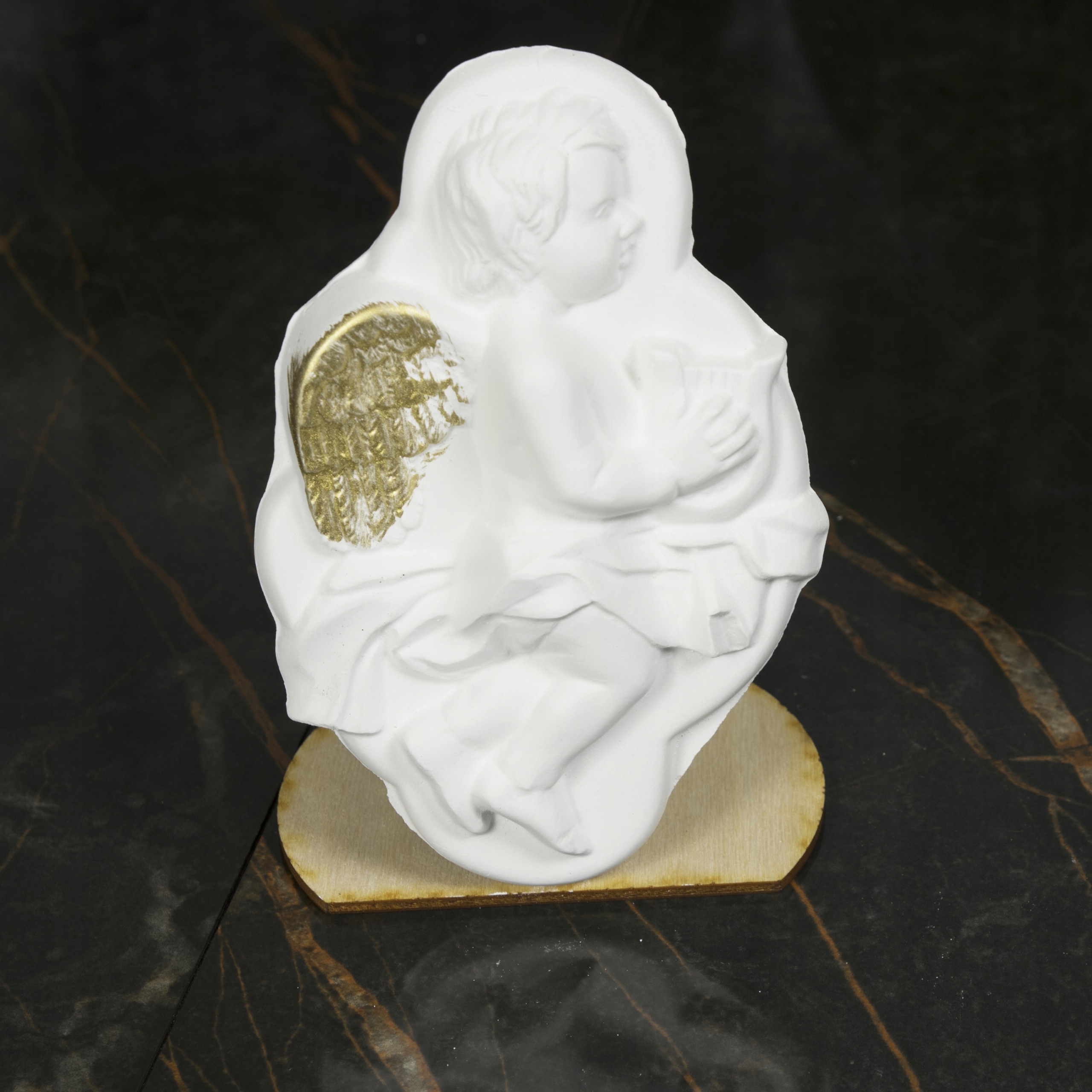 Плоский ангелочек из гипса с пропиткой. Он восхищает своим оригинальным видом.