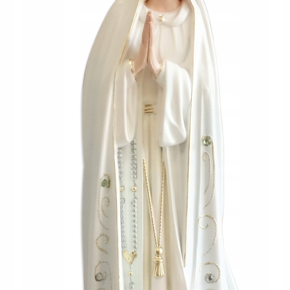 Эта статуэтка сделана как оригинальная фигура Фатимы из Португалии. Virgin Mary стоит на облаке, где также есть три фаршированных капусты. Вся статуэтка расположена на пластиковой основе, на которой появляется надпись Фатима. Эта статуэтка идеально подходит для домашней часовни