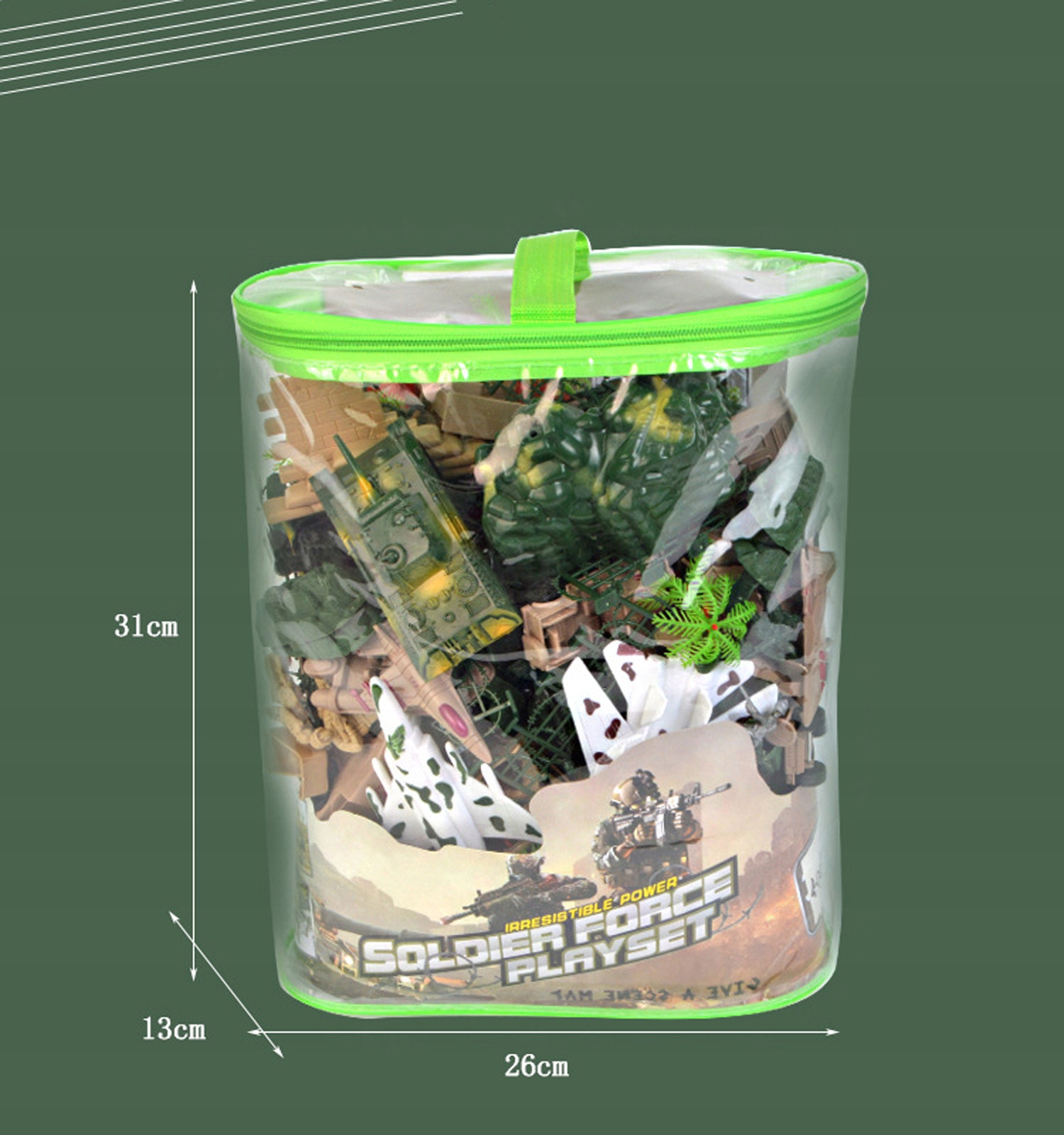 Этот полный военный набор состоит из 350 элементов, включая маленьких солдатиков. Каждыйсолдат выполнен с вниманием к мельчайшим деталям, что делает их очень реалистичными. Помимо них в набор входит военная база, которая служит командным центром для этих маленьких героев.