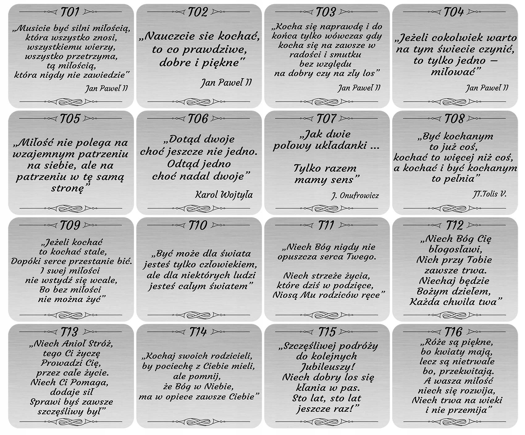 Ниже мы представляем великие слова, великих людей, цитаты и стихи... Наши клиенты часто черпают вдохновение из наших предложений. При заказе укажите номер предложения, например: T05