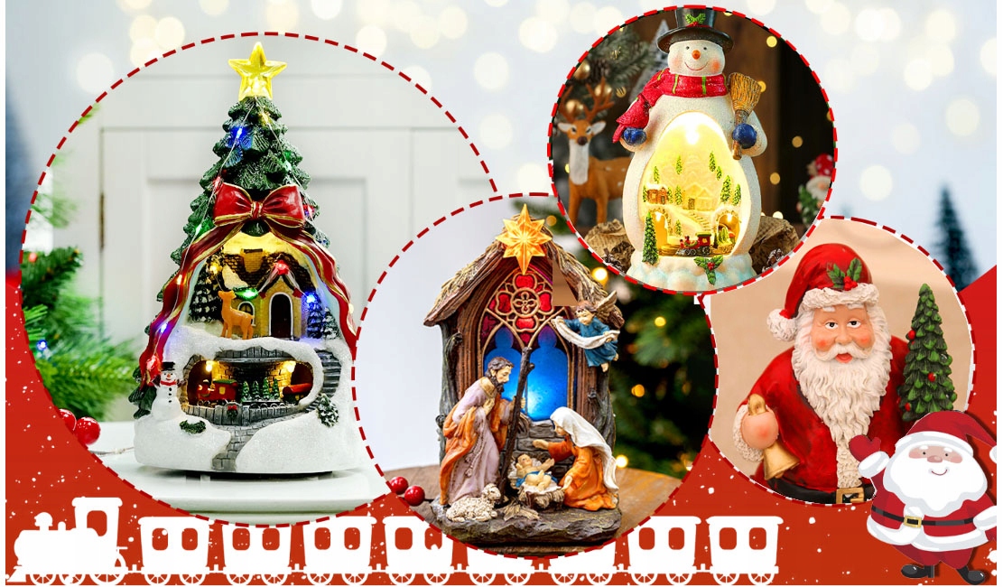 Фигурки Санта -Клауса с движущимися светодиодными поездами музыки
