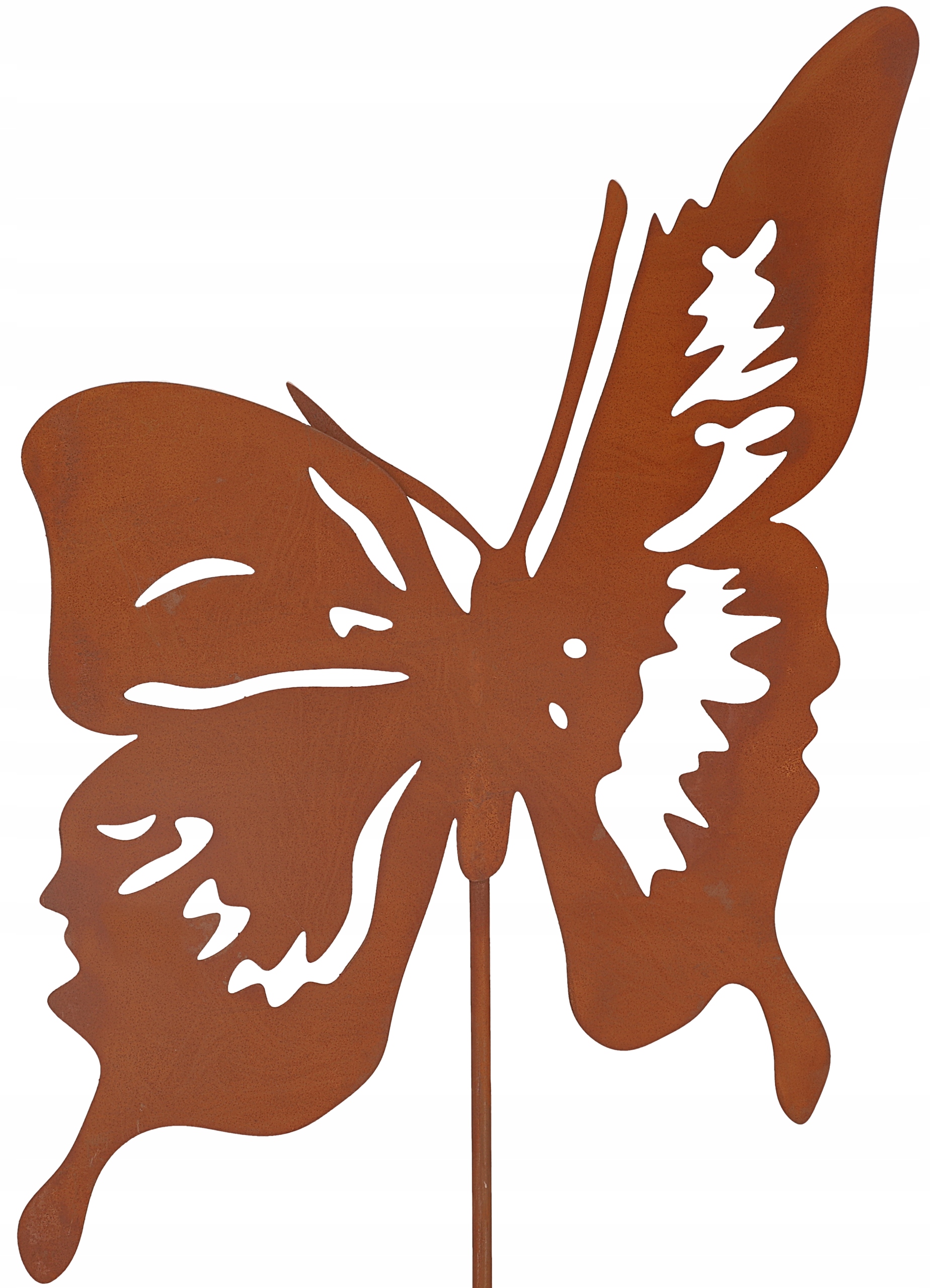 - Бабочка, выпущенная из листового металла на стержне, была изготовлен из листового металла РОСТ, что придает ему слегка ржавый цвет.