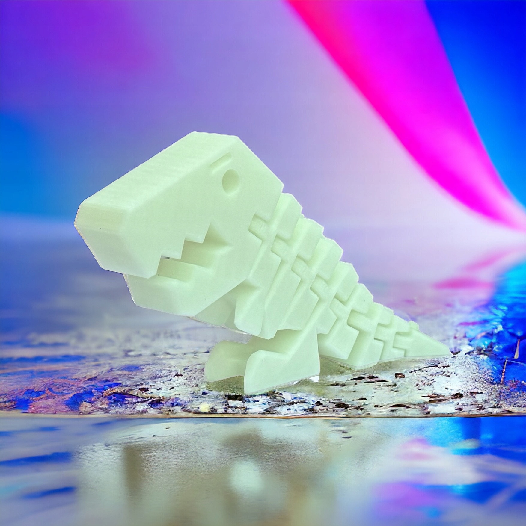 ✔️ Яркие цвета и светящиеся свойства: Нить, из которой был сделан динозавр, обладает способностью светиться в темноте, меняясь от насыщенных зеленых тонов до нежных пастельных тонов, что делает фигуру динамично оживляющей. космос после заката .