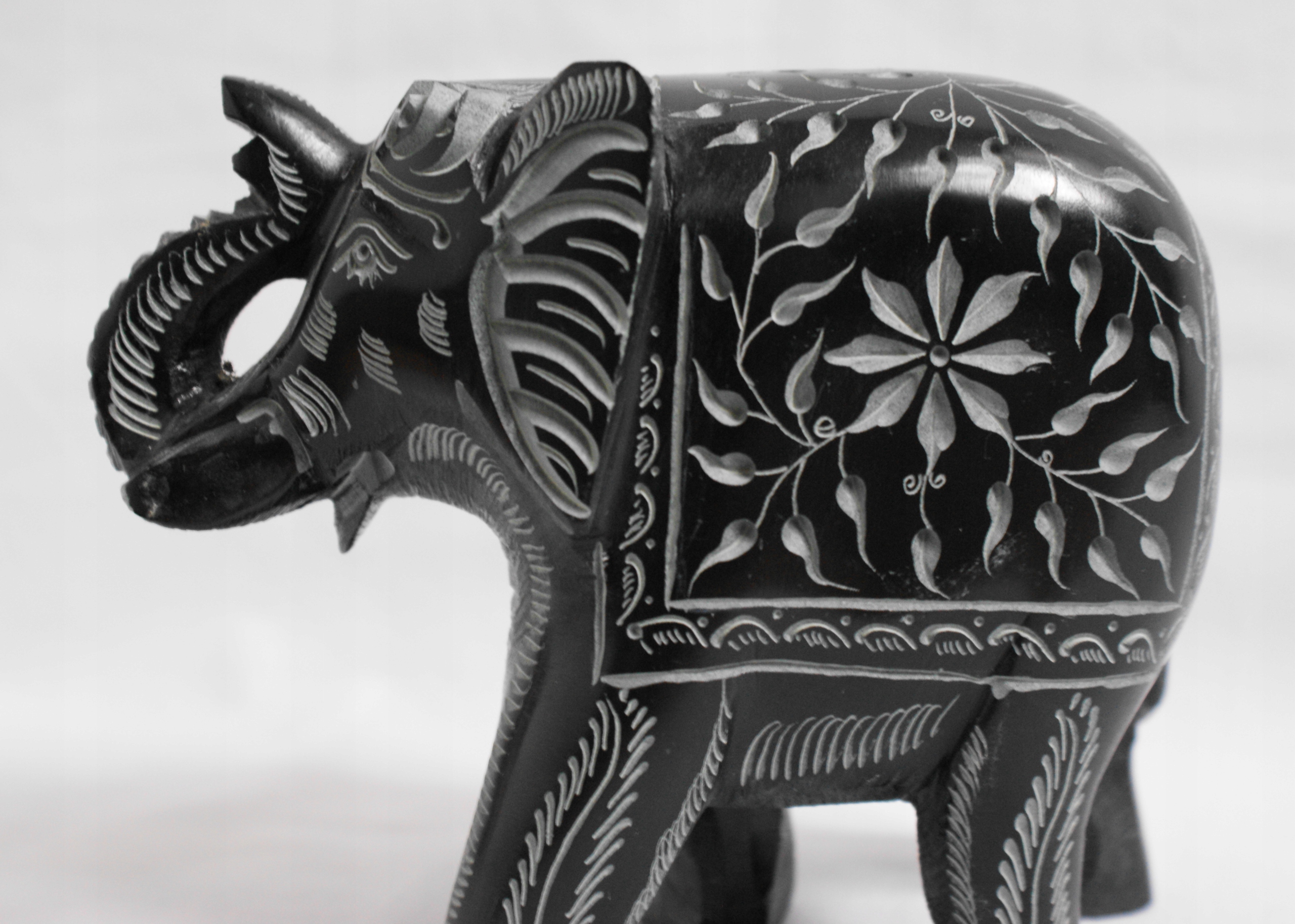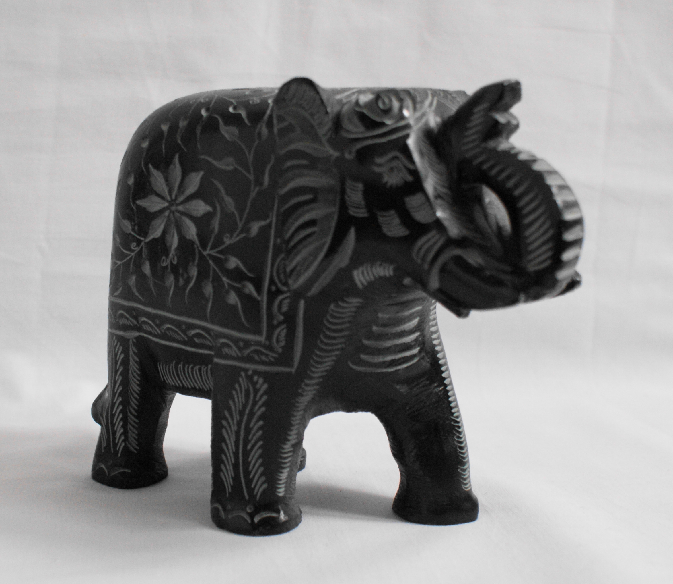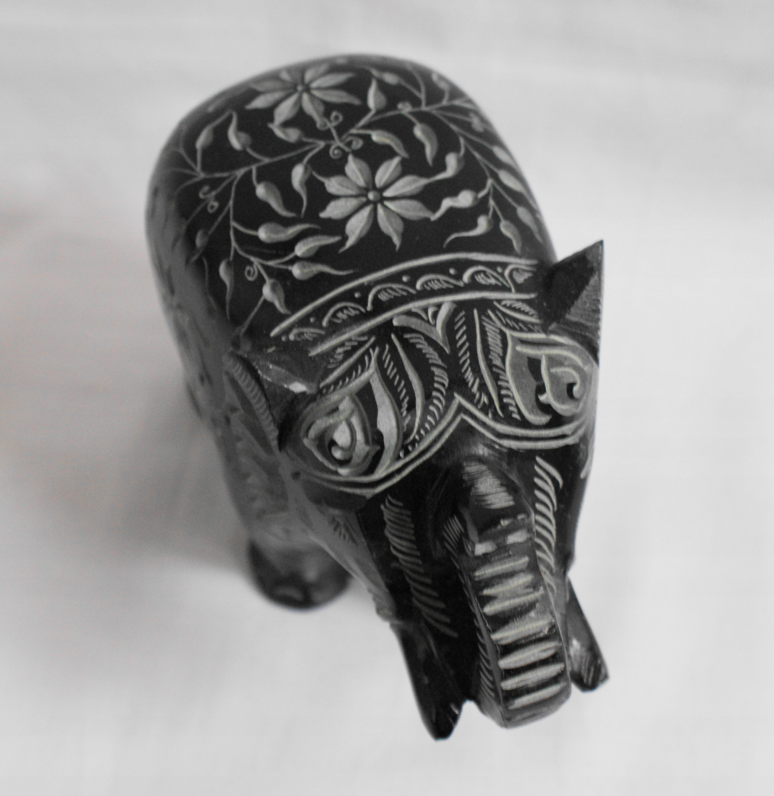 Фігурка кам'яного слона, ручна різьба по чорному каменю