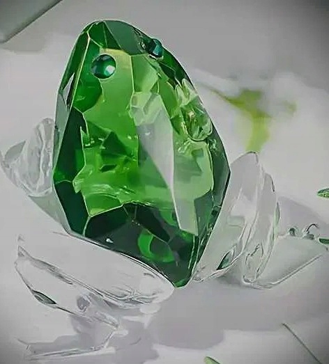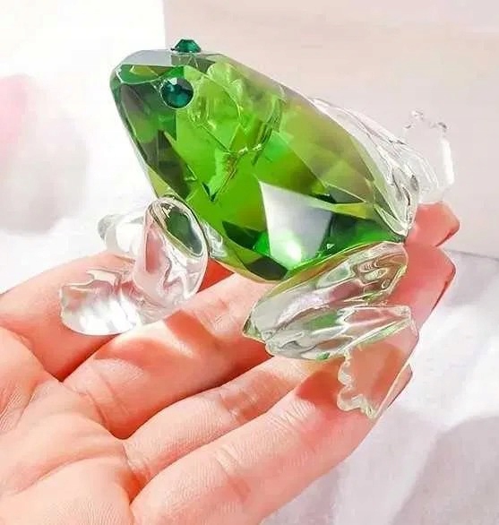Хрустальная фигурка лягушки. Цвет изумрудно-зеленый. 5х5х5см