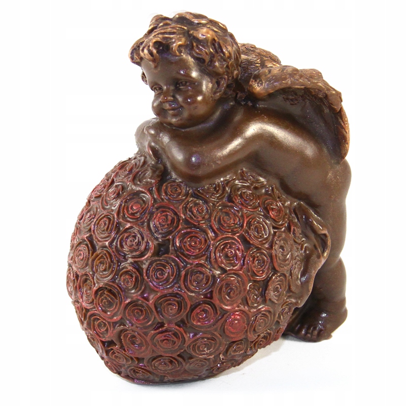 Фігурка маленького ангела, що сидить на кулі шоколадних троянд