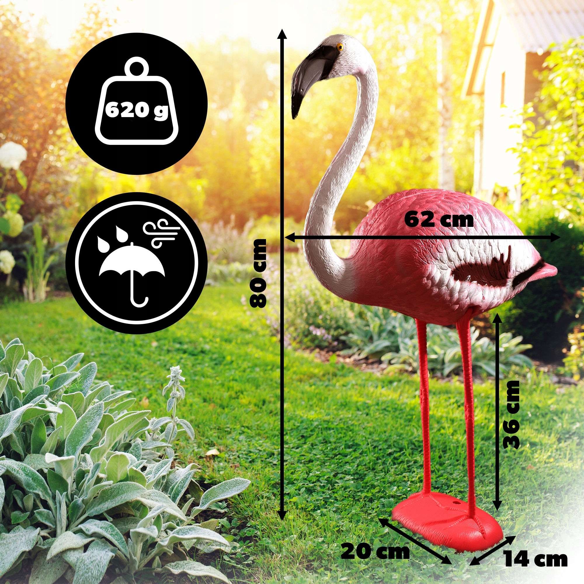 ✅РАЗМЕРЫ - точное воспроизведение Фигурка фламинго подчеркивает ее размеры. Высота 80 см, ширина 62 см и глубина 20 см создают реалистичный внешний вид птицы.