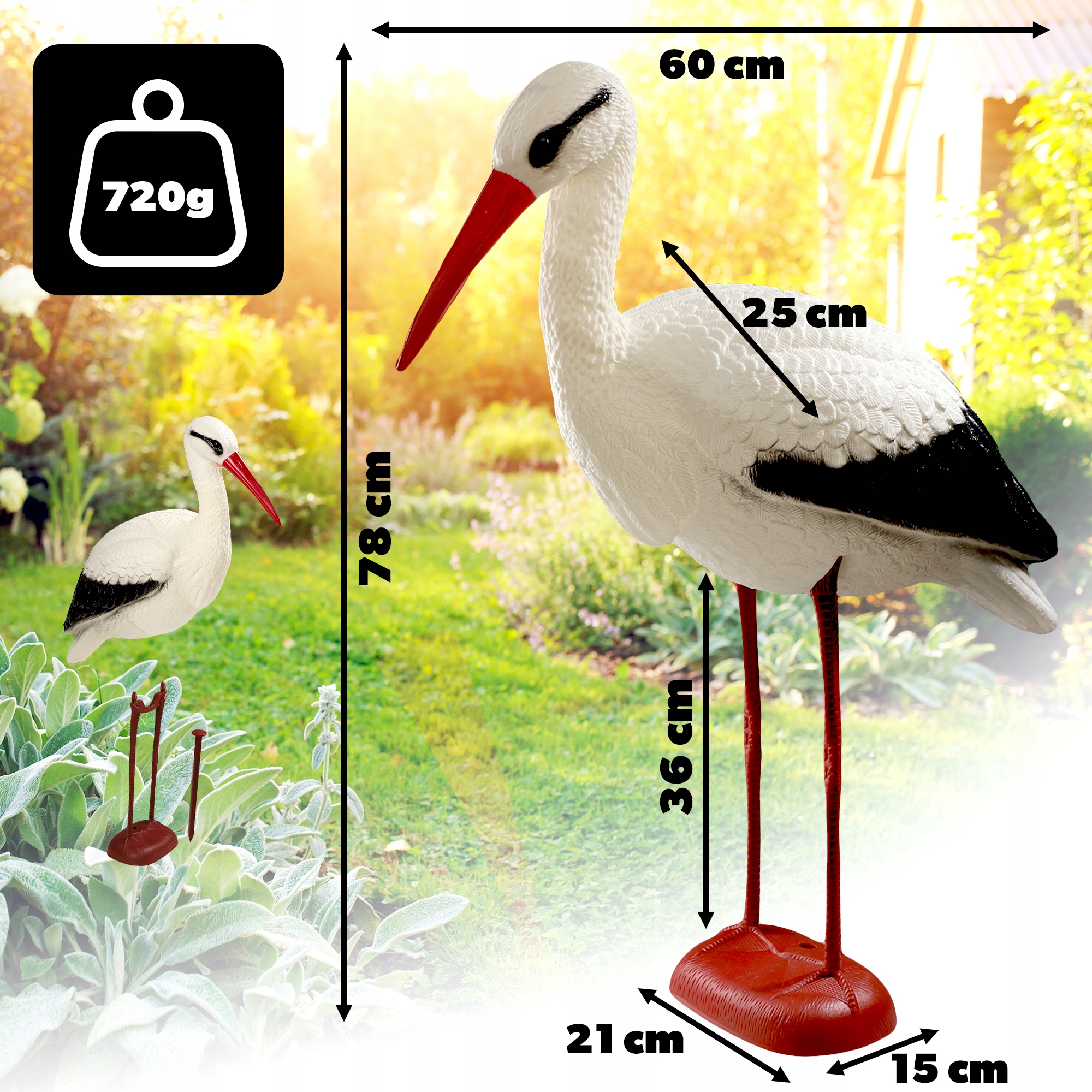✅ РАЗМЕРЫ – точное воспроизведение фигурки аиста подчеркивает ее размеры. Высота 78 см, ширина 60 см и глубина 25 см создают реалистичный вид птицы.