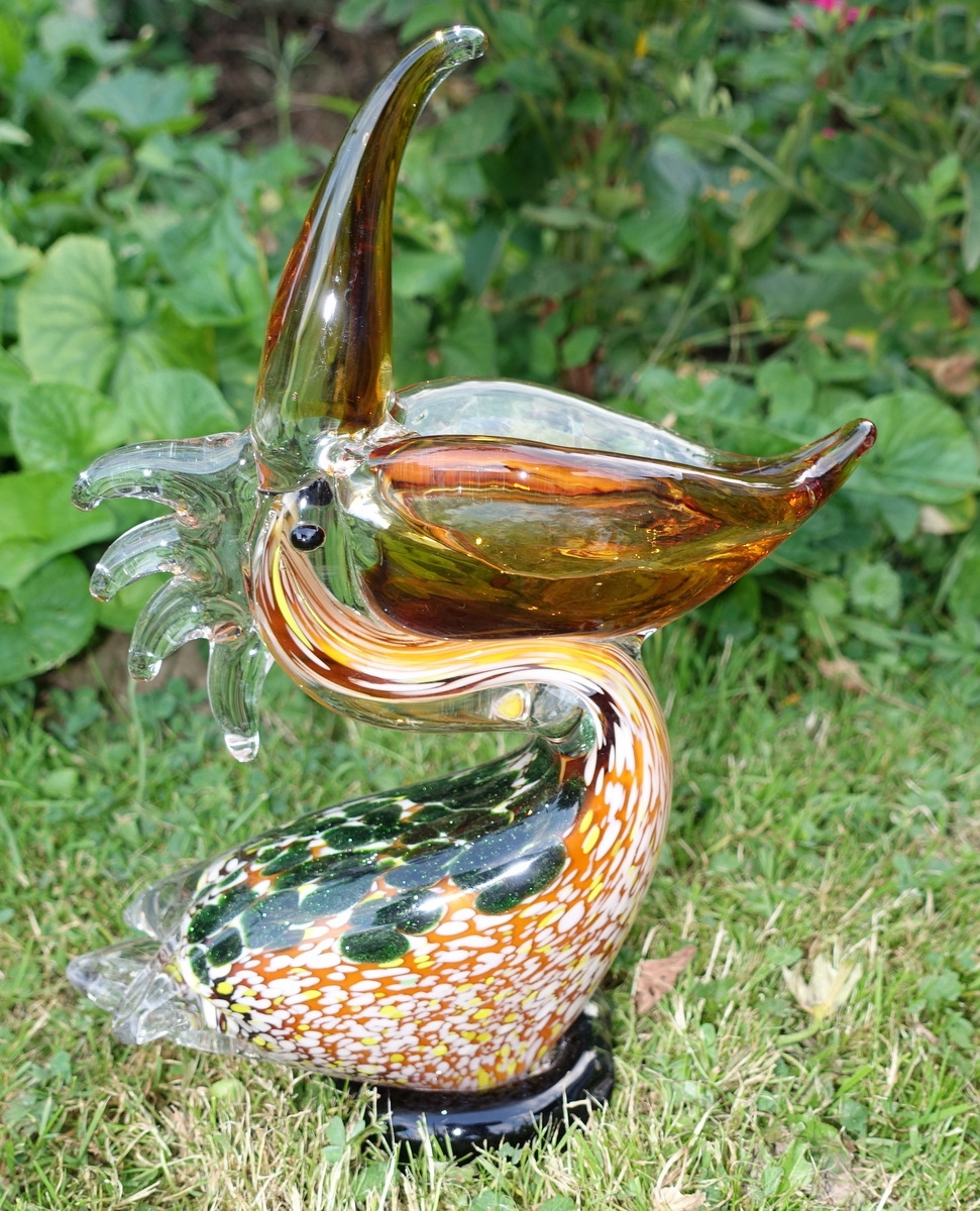 Статуэтка демонстрирует красоту такой чудесной птицы, как пеликан; отлично сделано. Пожалуйста, обратите особое внимание на точность его изготовления (выполнено в стиле итальянского Мурано) и уникальные цвета.