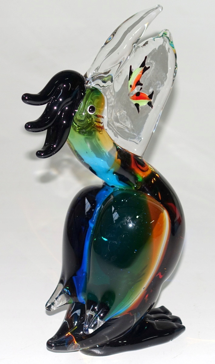 Статуэтка демонстрирует красоту такой чудесной птицы, как пеликан; отлично сделано. Пожалуйста, обратите особое внимание на точность его изготовления (выполнено в итальянском стиле Мурано) и уникальные цвета.