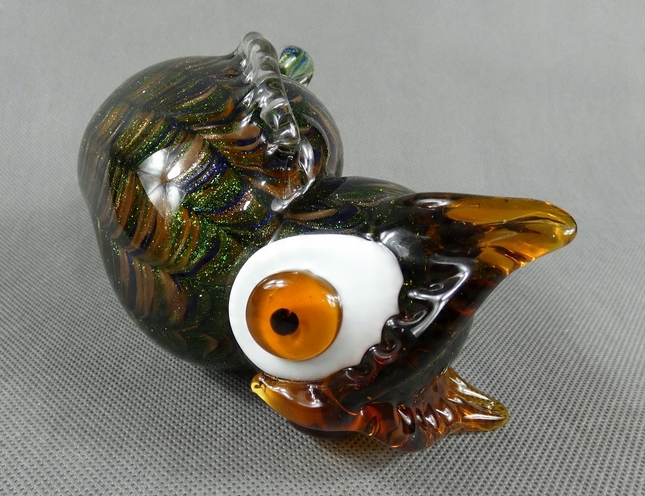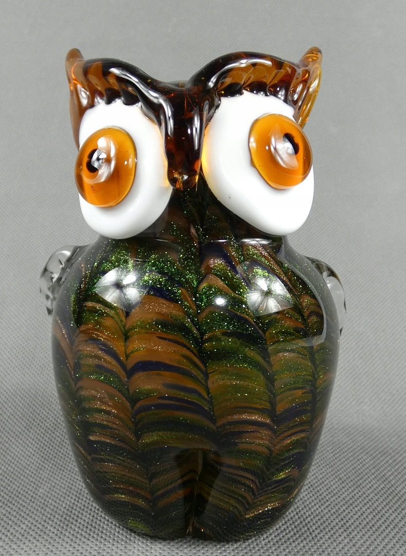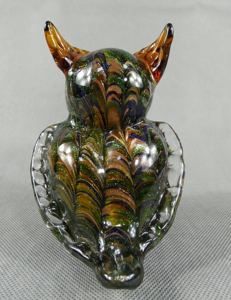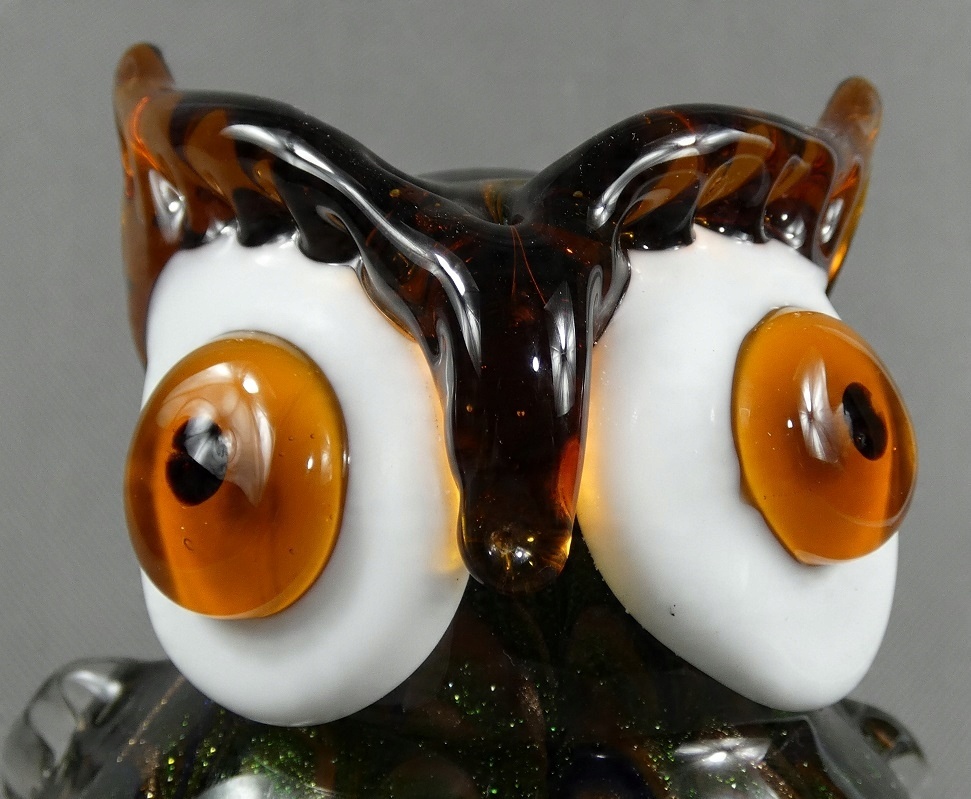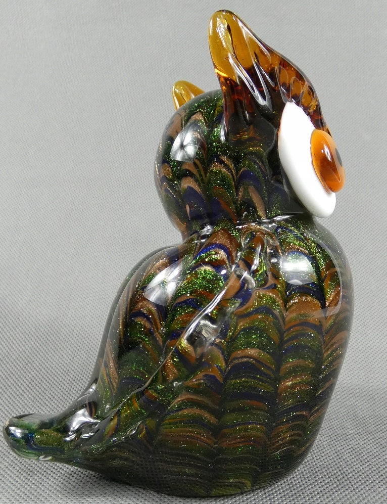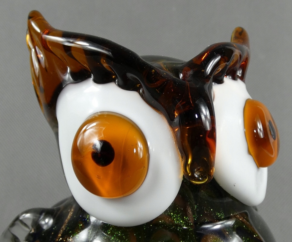 Фігурка СОВА, золотисто-зелене, муранське скло, фігурка філіна