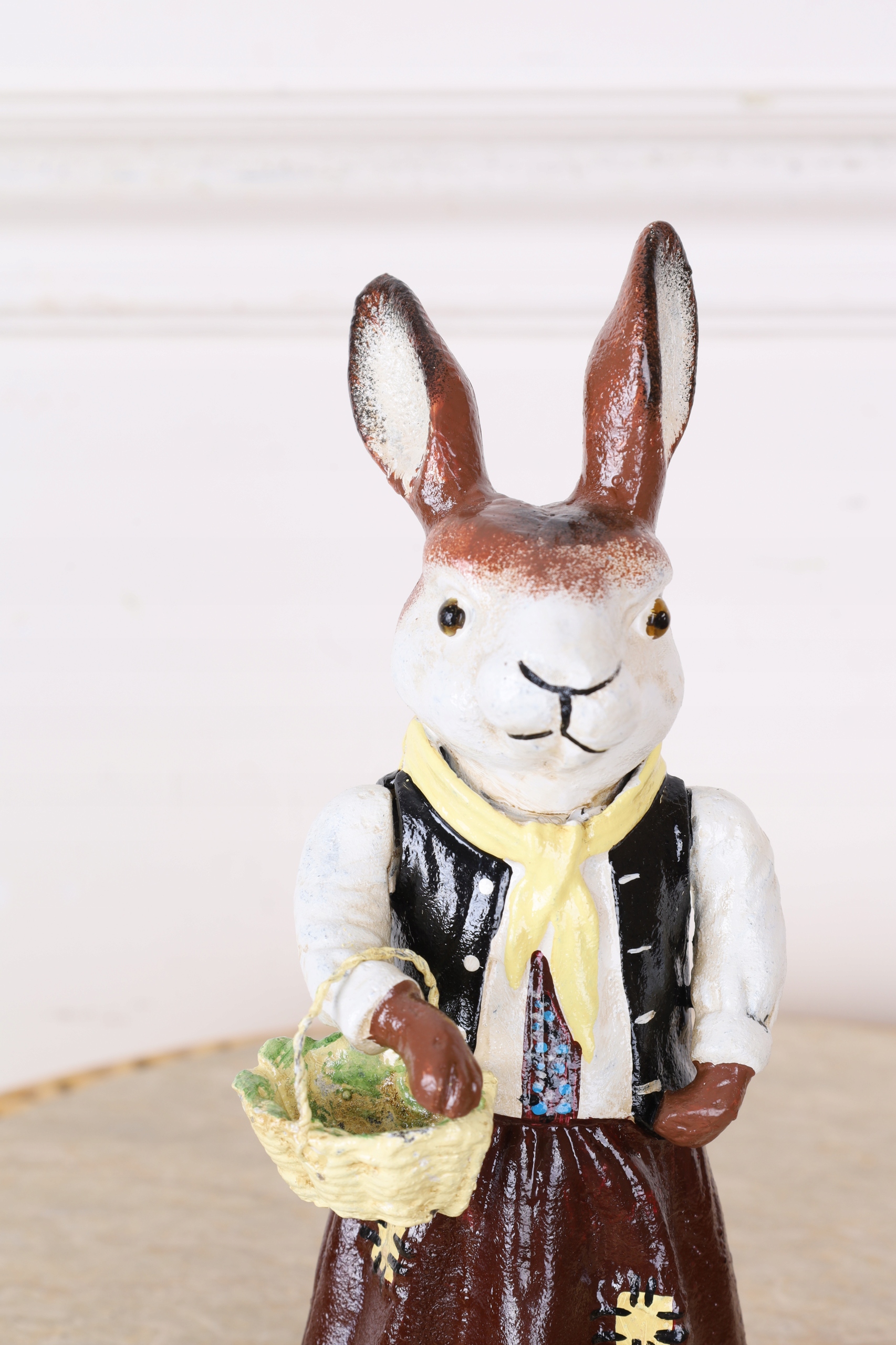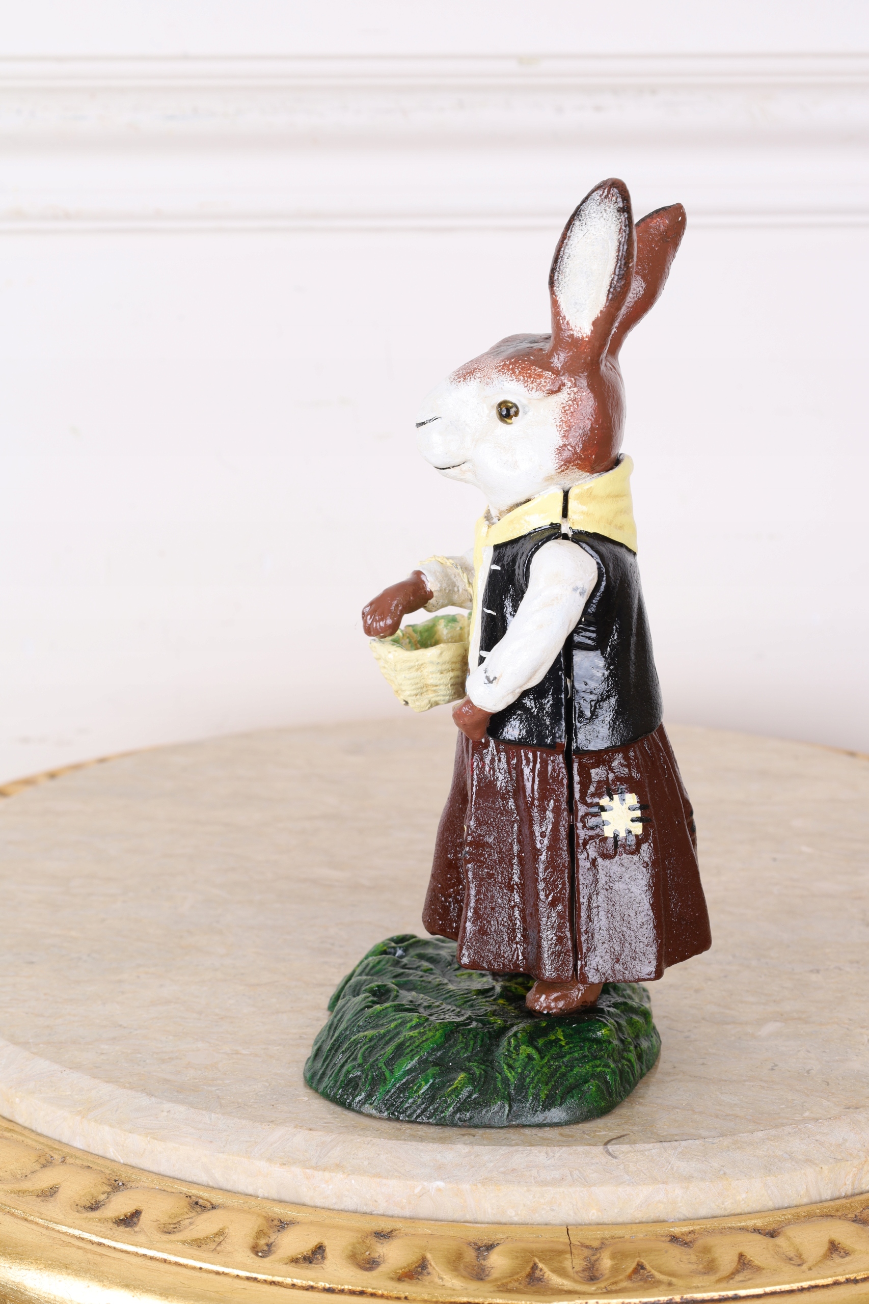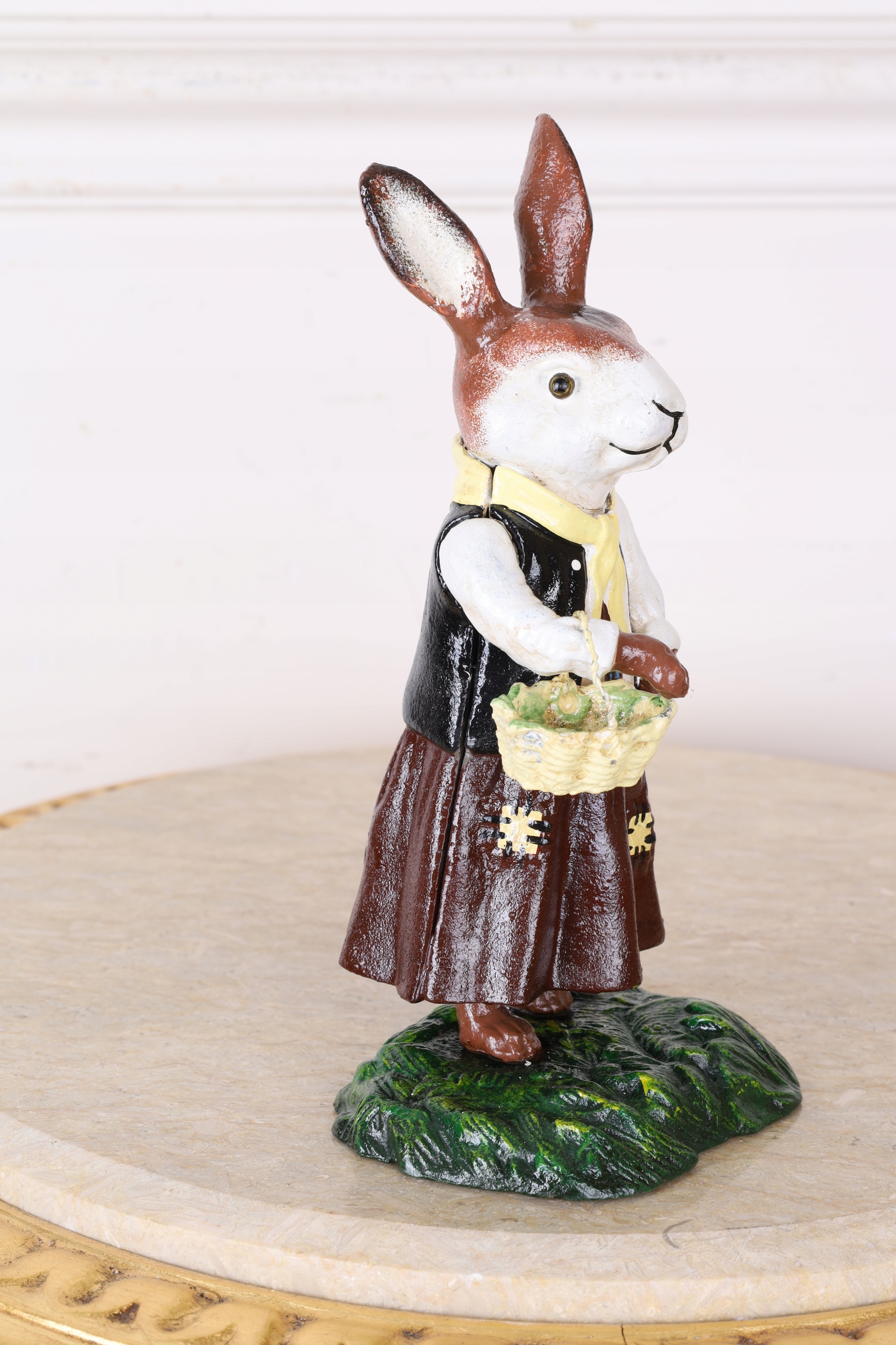 Статуэтка с чугуном - кролика с корзиной