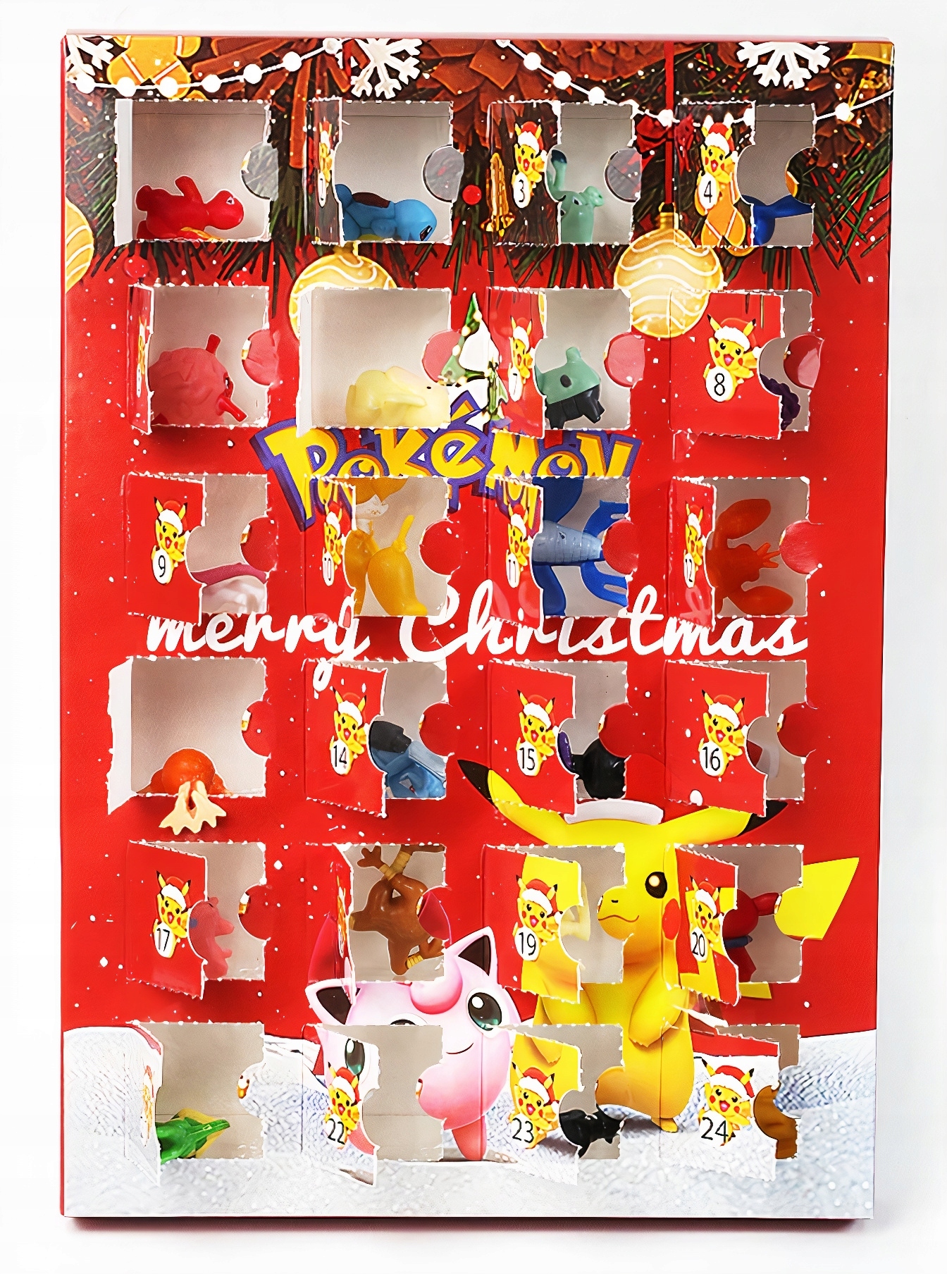 Адвент-календарь с игрушками из качественного нетоксичного пластика. Подходит для детей старше 3 лет. Обратный отсчет до Рождества – увлекательное время для детей. В календаре Адвента Покемонов целых 24 элемента. Это идеальный способ начать праздничный сезон! Если вы задаетесь вопросом, чем удивить поклонника покемонов, наш календарь подойдет идеально!