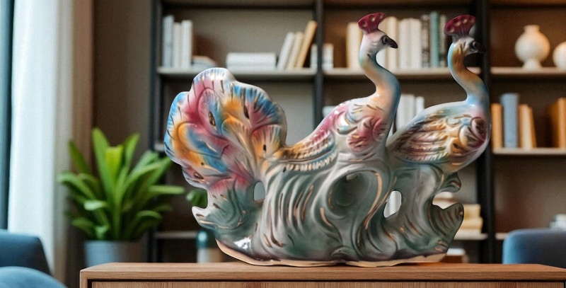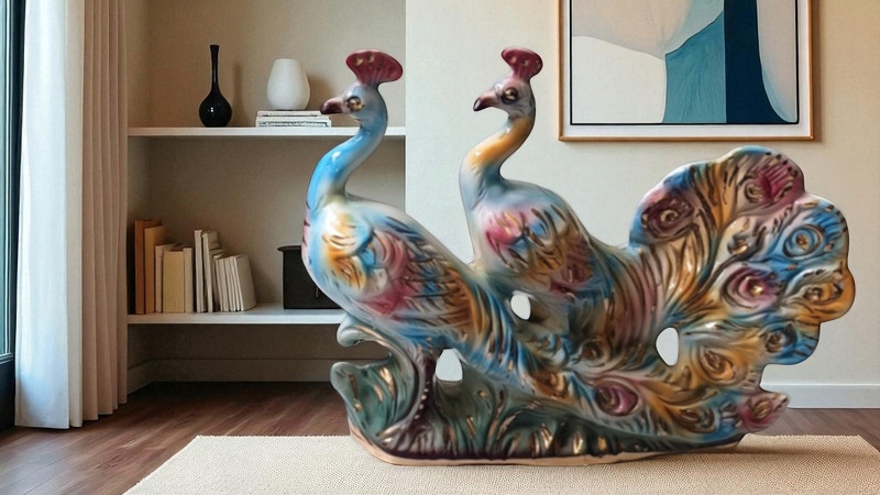 Фигурку красочная павлина итальянская керамика длина 40 см кл