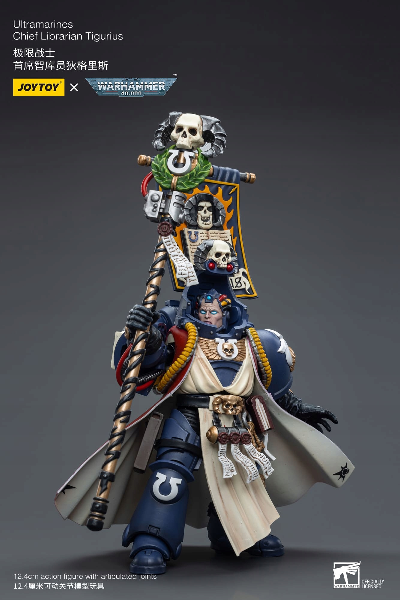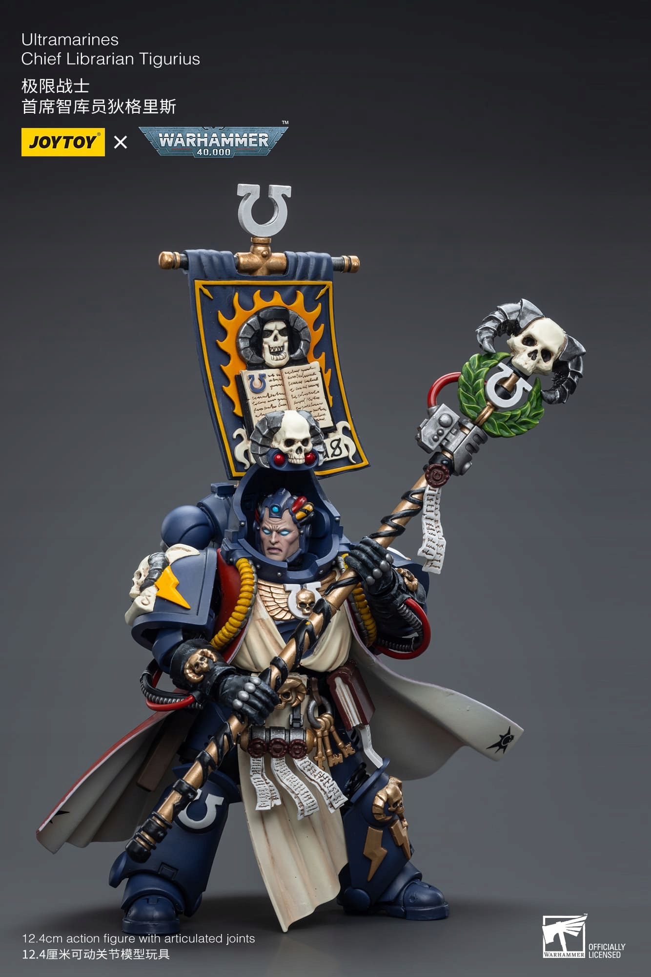 фигурный вархаммер 40K (Ультрамарины) - Главный библиотекарь Тигурий с высотой около 12 см. Шкала 1:18 . Он смоделирован на изображении персонажа, известного из этой чрезвычайно популярной игры RPG. Он был подготовлен и выпущен ценным производителем фигур Collector, The Company Joy Toy.