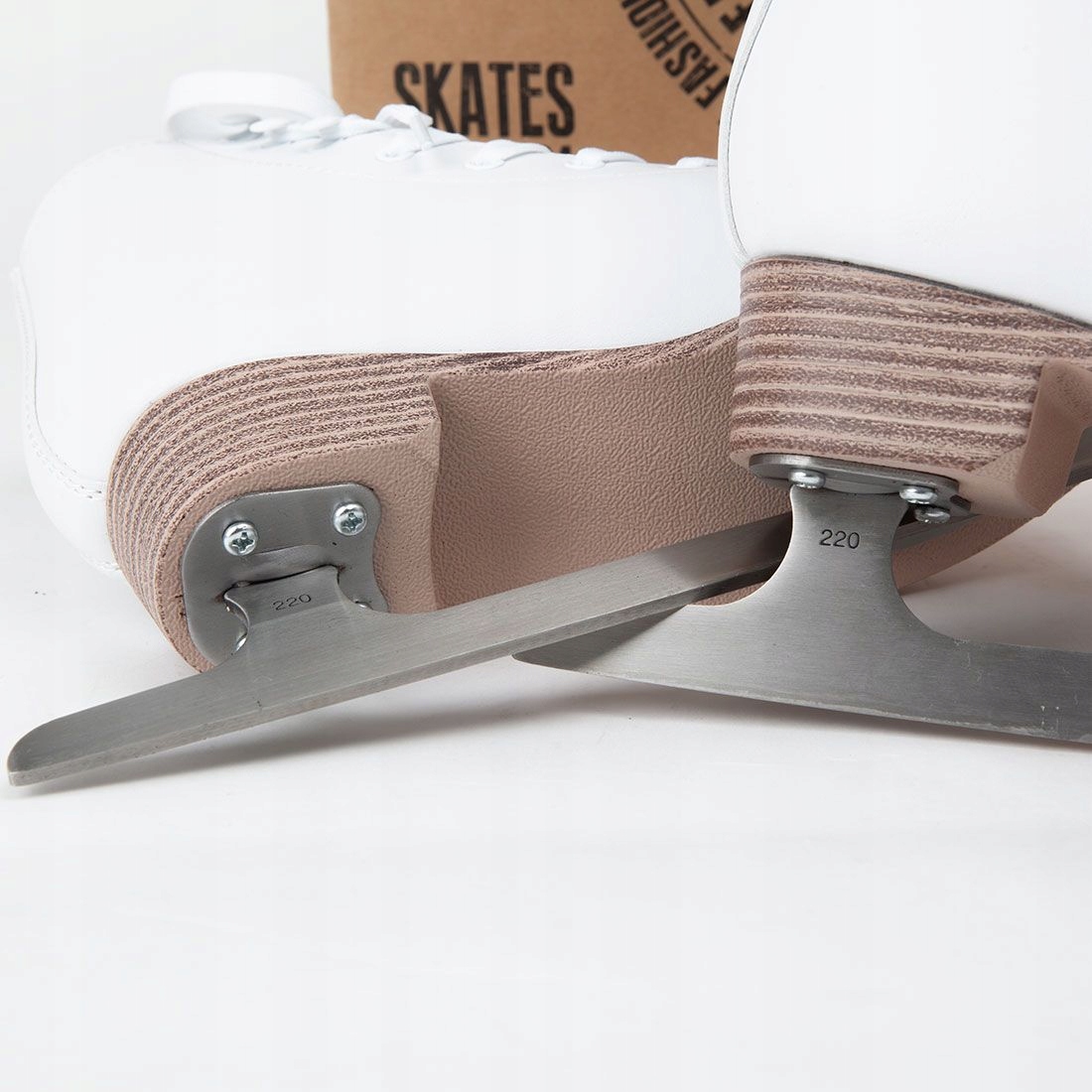 Классические женские мягкие коньки белого цвета, недавно с коричневой подошвой, предназначенные для любительского катания.