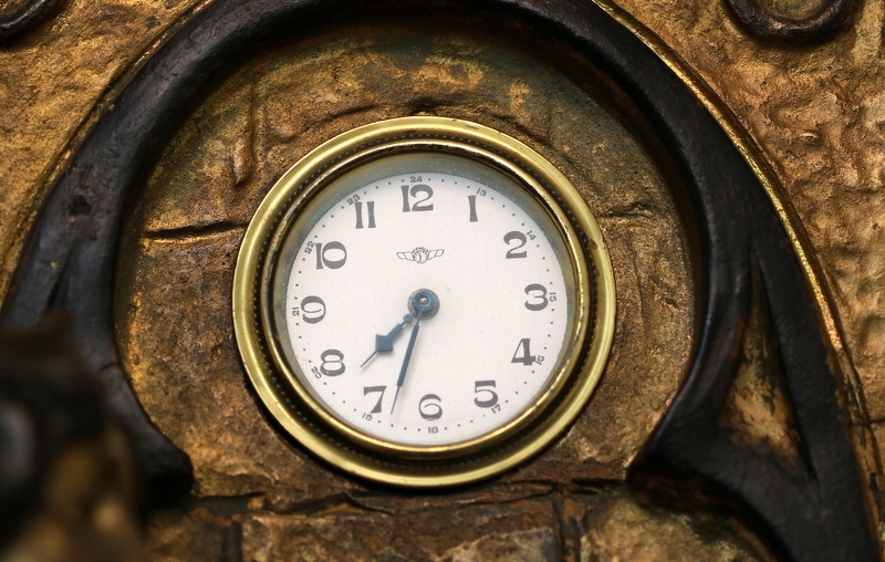Фігурний камінний годинник Kienzle в стилі модерн початку 20 століття. Поліхромія