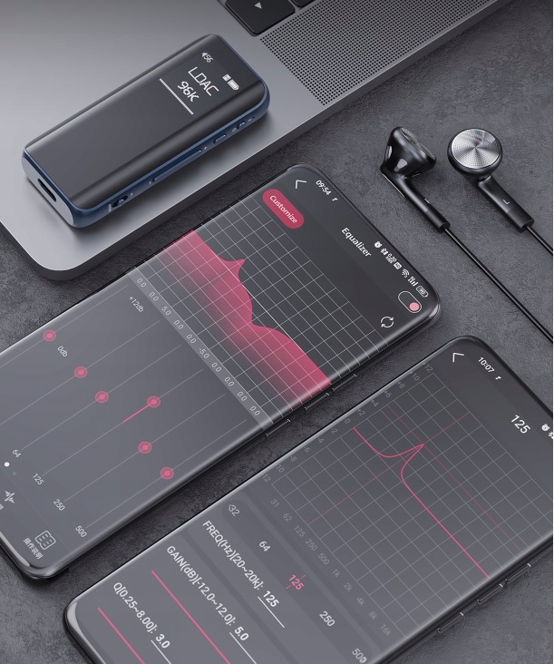 BTR15 имеет глобальный параметрический эквалайзер (PEQ). Благодаря запатентованному алгоритму PEQ и пользовательскому интерфейсу FIIO в любом режиме вы можете выбрать определенные частоты для настройки, а также их уровни усиления и полосу пропускания, что позволяет вам точно настроить звук так, как вы хотите.