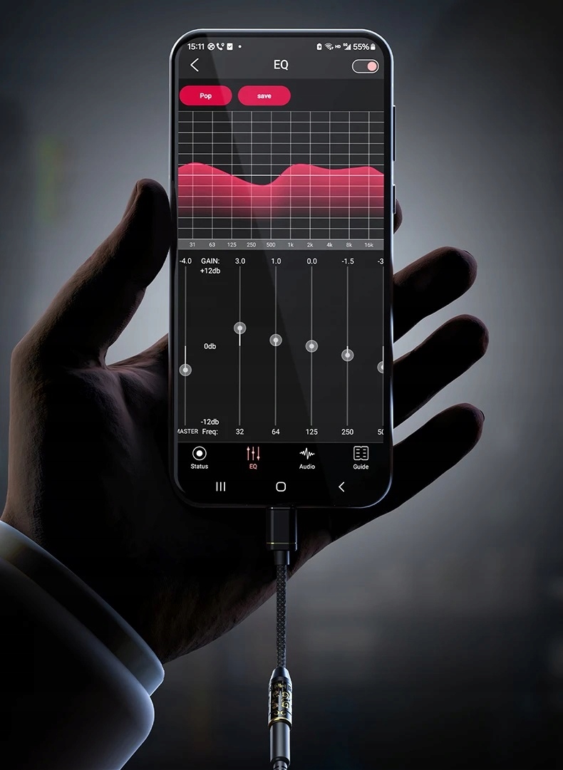 Усовершенствованная система DSP класса аудиофилов обеспечивает исключительную точность параметрического эквалайзера. Благодаря 10-полосной PEQ, полной персонализации, пользователь может настроить звук на свои предпочтения, как и в профессиональном аудиооборудовании. Консилер может быть скорректирован с помощью приложения FIIO Control или веб -интерфейса, сохранить ваши настройки и удобно поделиться ими в облаке.