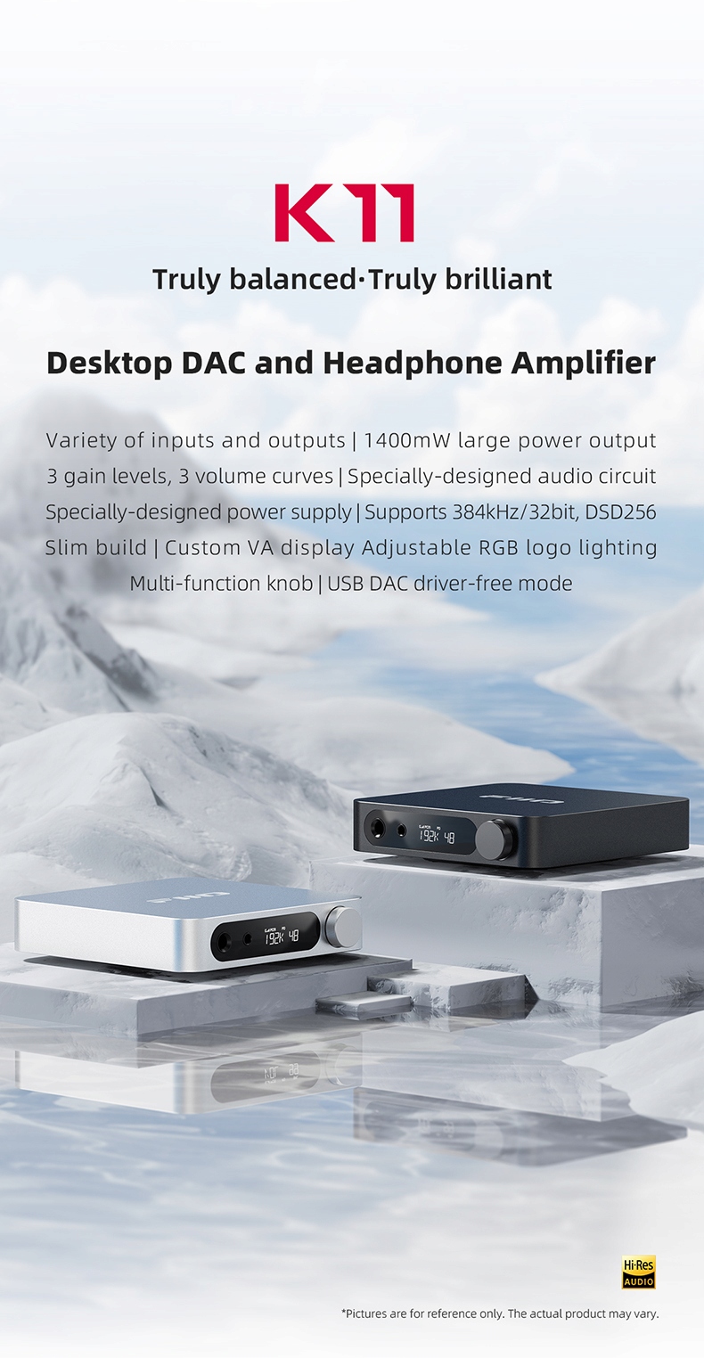 K11 имеет 3 отдельных уровня усиления, каждый со своей кривой громкости. Это позволяет K11 обеспечить лучшее качество прослушивания с различными типами наушников, независимо от того, используете ли вы чувствительные наушники или более сложные в использовании полноразмерные наушники.