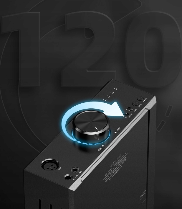 Знаменитая массивная ручка громкости FIIO оснащена реконструкцией кривой АЦП, что обеспечивает точную и плавную регулировку по 120 уровням громкости с минимальным шумом и дрейфом громкости между левым и правым каналами.