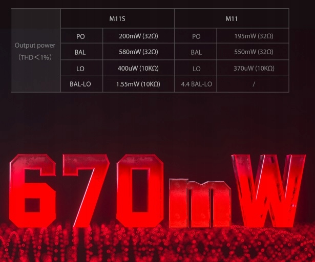 При нагрузке 32 Ом несимметричная выходная мощность составляет 167 мВт, а сбалансированная выходная мощность составляет 670 мВт, что делает M11S a От музыки просто захватывает дух.