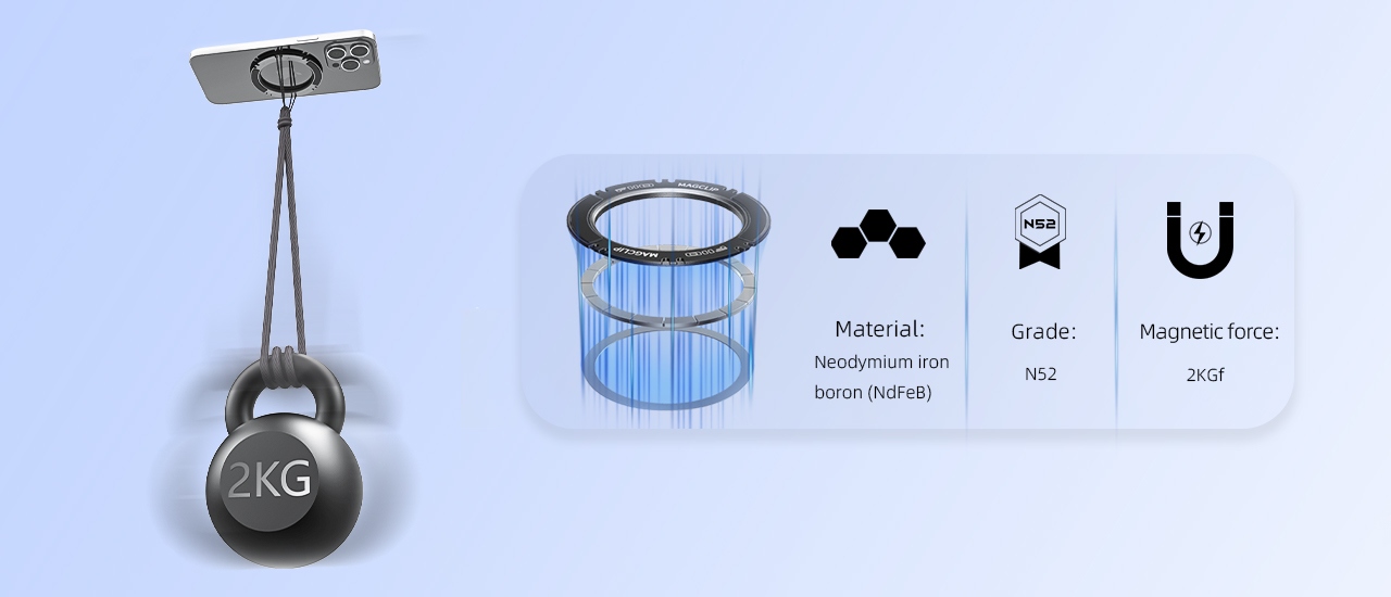 Magclip - это полностью металлический дизайн, который не только обеспечивает ощущение общения с премиальным продуктом, но также делает оборудование долговременным и устойчивым к исчезновению. Силиконовая подушка использовалась спереди, которая предотвращает царапины.