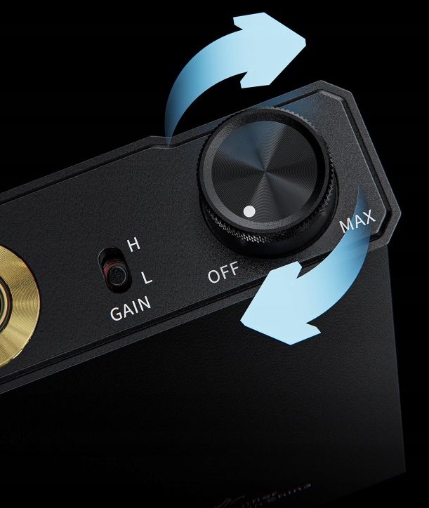 Идеально сбалансированная ручка громкости позволяет точно установить желаемую громкость. При нажатии он также работает как переключатель включения/выключения.