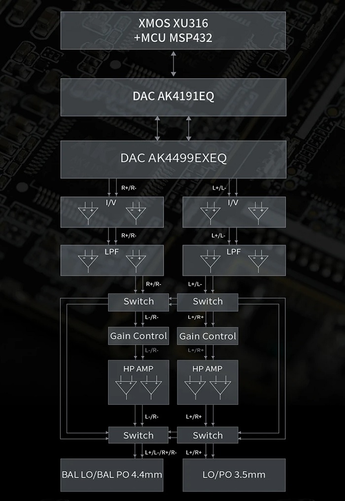 Q15 оснащен новейшей комбинацией ЦАП AKM — AK4191EQ+AK4499EX. Сотрудничество с недавно разработанной технологией маршрутизации DWA значительно улучшает качество звука.