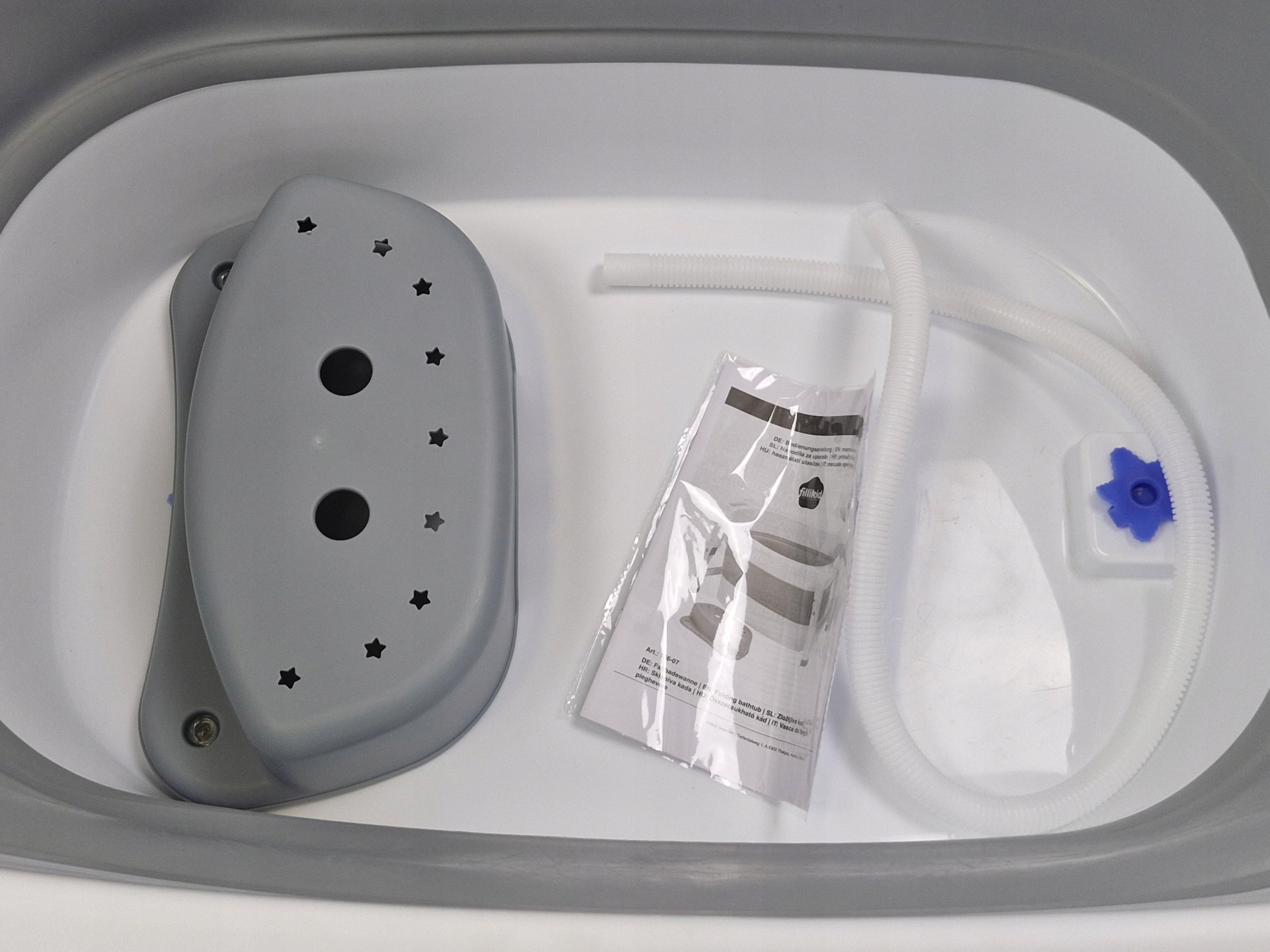 - Легкое опорожнение - Используя прикрепленную змею быстро и комфортно, вы сливаете воду, даже с ванной. Безопасно для кожи ребенка.