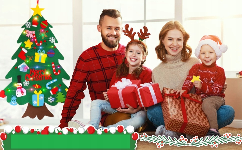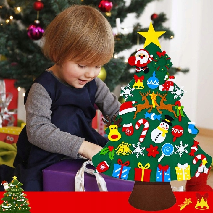 Filcowa choinka z dekoracją XXL 32szt. rzep na prezent dla dziecka