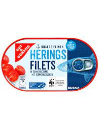 60% филе сельди , 35% томатный крем (томатное пюре 31% двойной концентрированный, вода, рапный масло, жидкий сахар, кухонная соль, горчица [вода, горчица, уксус , кухня, кухонная соль, кухня, подготовка, коэффициент, коэффициент, сплайс, сплайс, оборудование. Агенты: Acet Acid], бренди, модифицированный ST после гуара, хлеб в середине лета), 5% кусочков помидоров. 1 соответствует 10% концентрата томата, концентрированного по отношению ко всему продукту. Продукт может содержать трассировки сельдерея, курицы, сои и глютена.