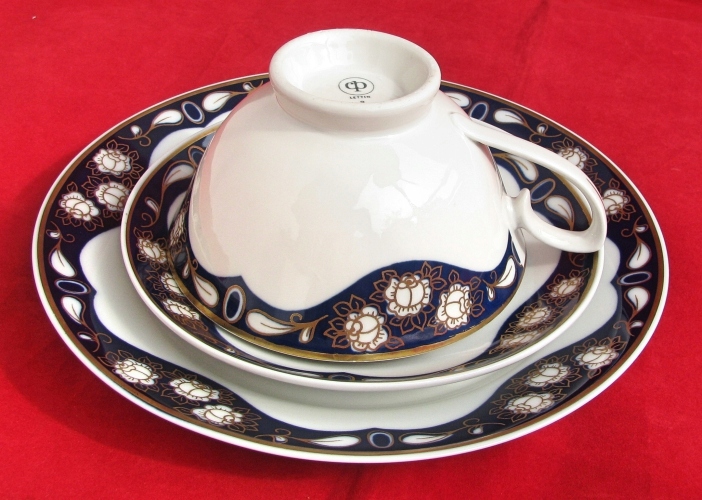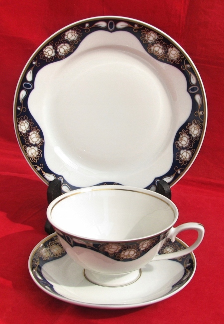 Filiżanka * TRIO * zestaw śniadaniowy kobalt * kwiaty * LETTIN Bavaria