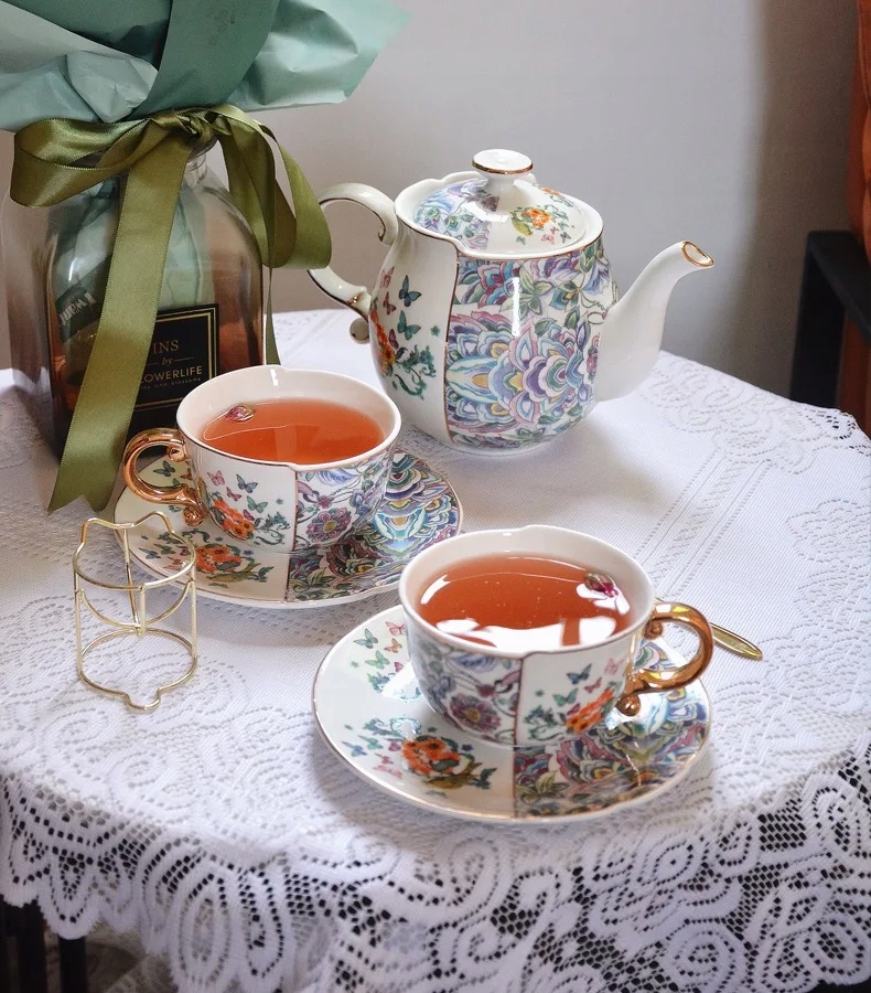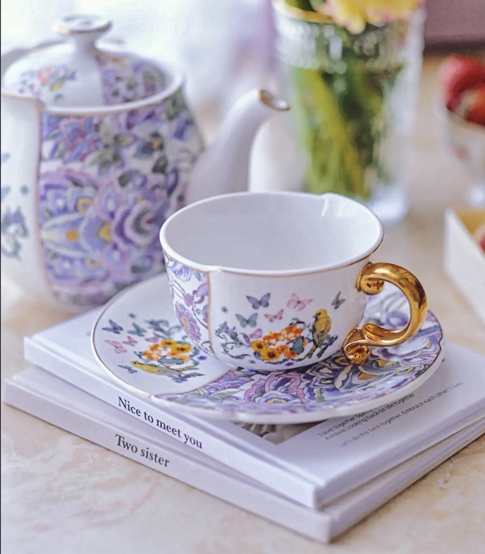 FILIŻANKA 2 SZT I CZAJNIK 950 ML MOTYL KWIATY PUDEŁKO PREZENTOWE 5 ELEM