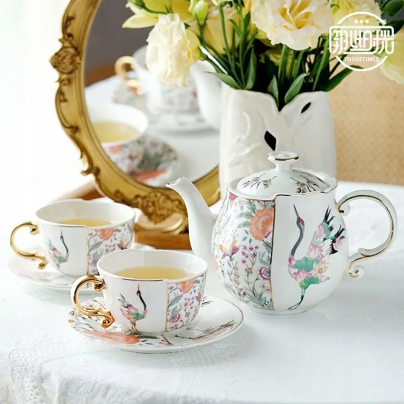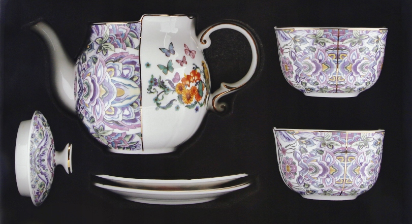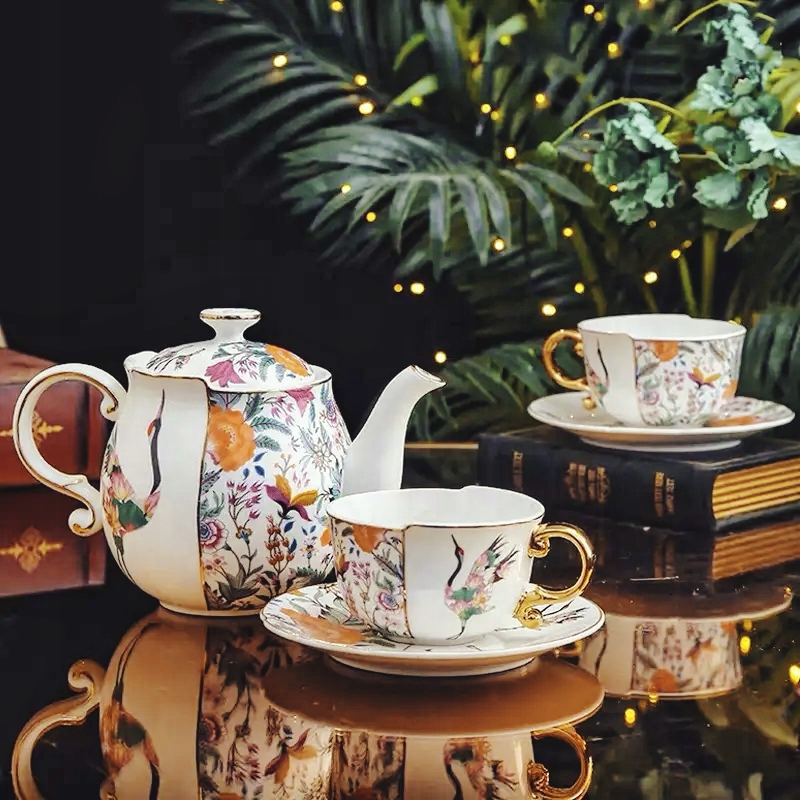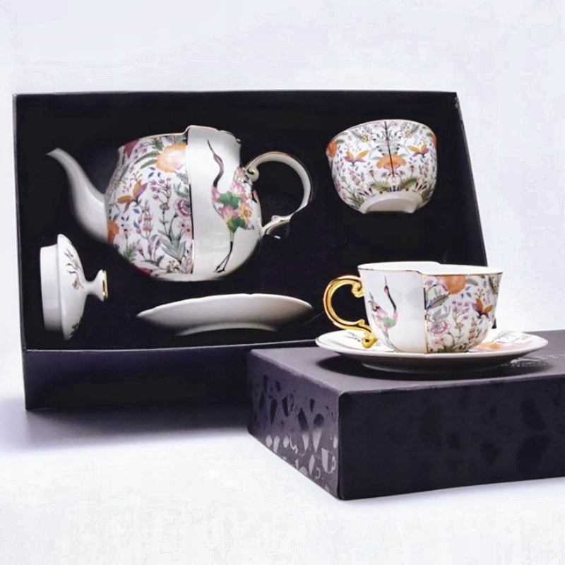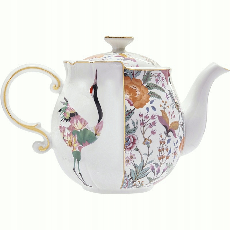 FILIŻANKA 2 SZT I CZAJNIK 950 ML ŻURAW KWIATY PUDEŁKO PREZENTOWE 5 ELEM