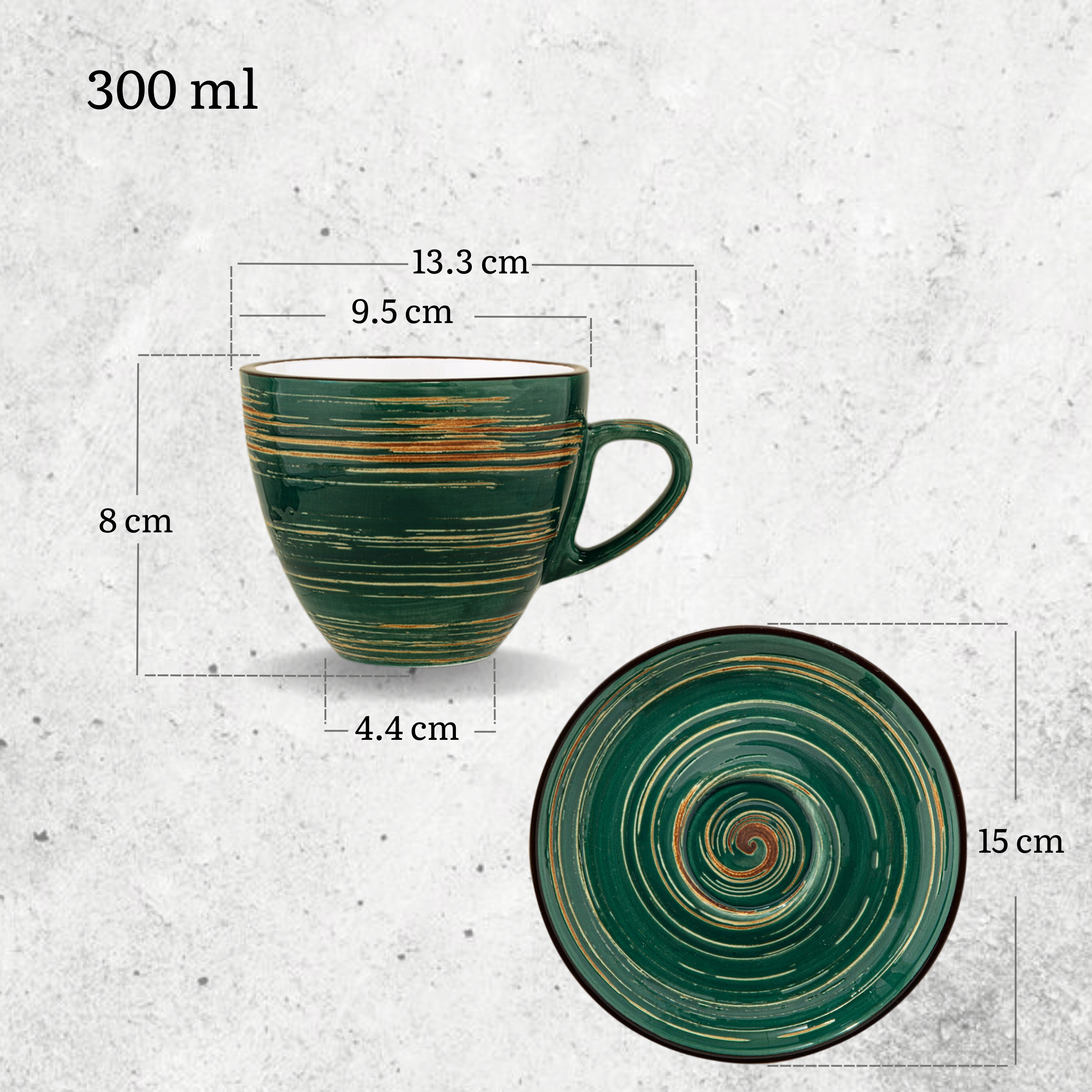 КОФЕЙНАЯ ЧАШКА 300 МЛ С СОУСОМ 15 СМ НАБОР ЗЕЛЕНЫЙ