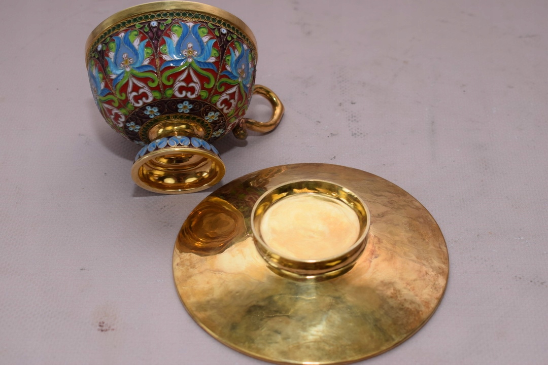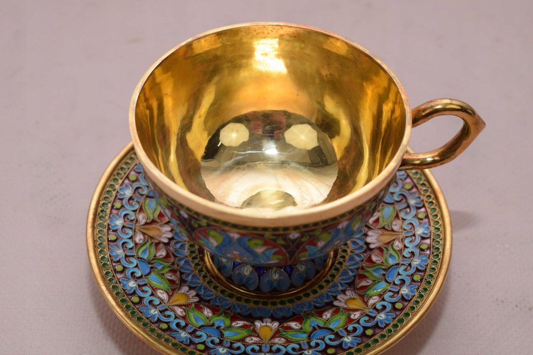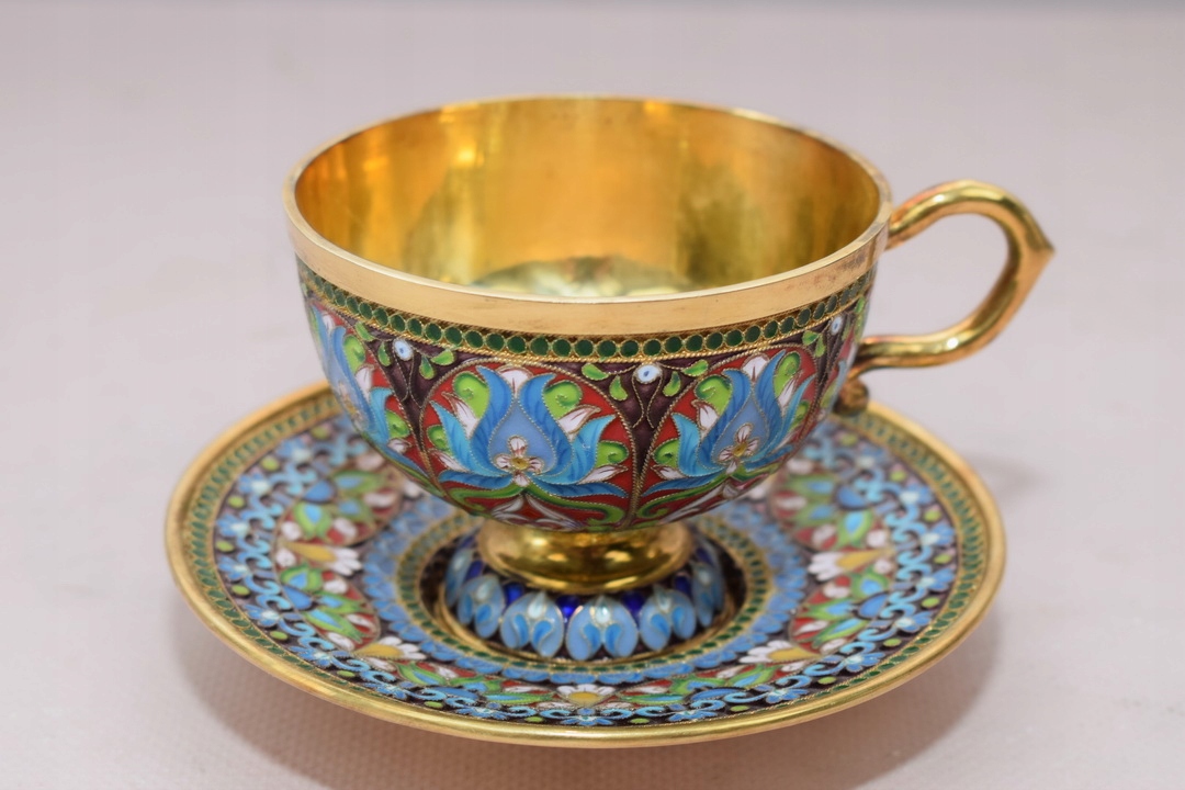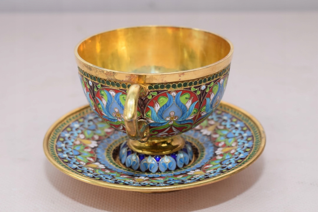Filiżanka Z Podstawką Emalia Srebro Złocone Carska Rosja 248g