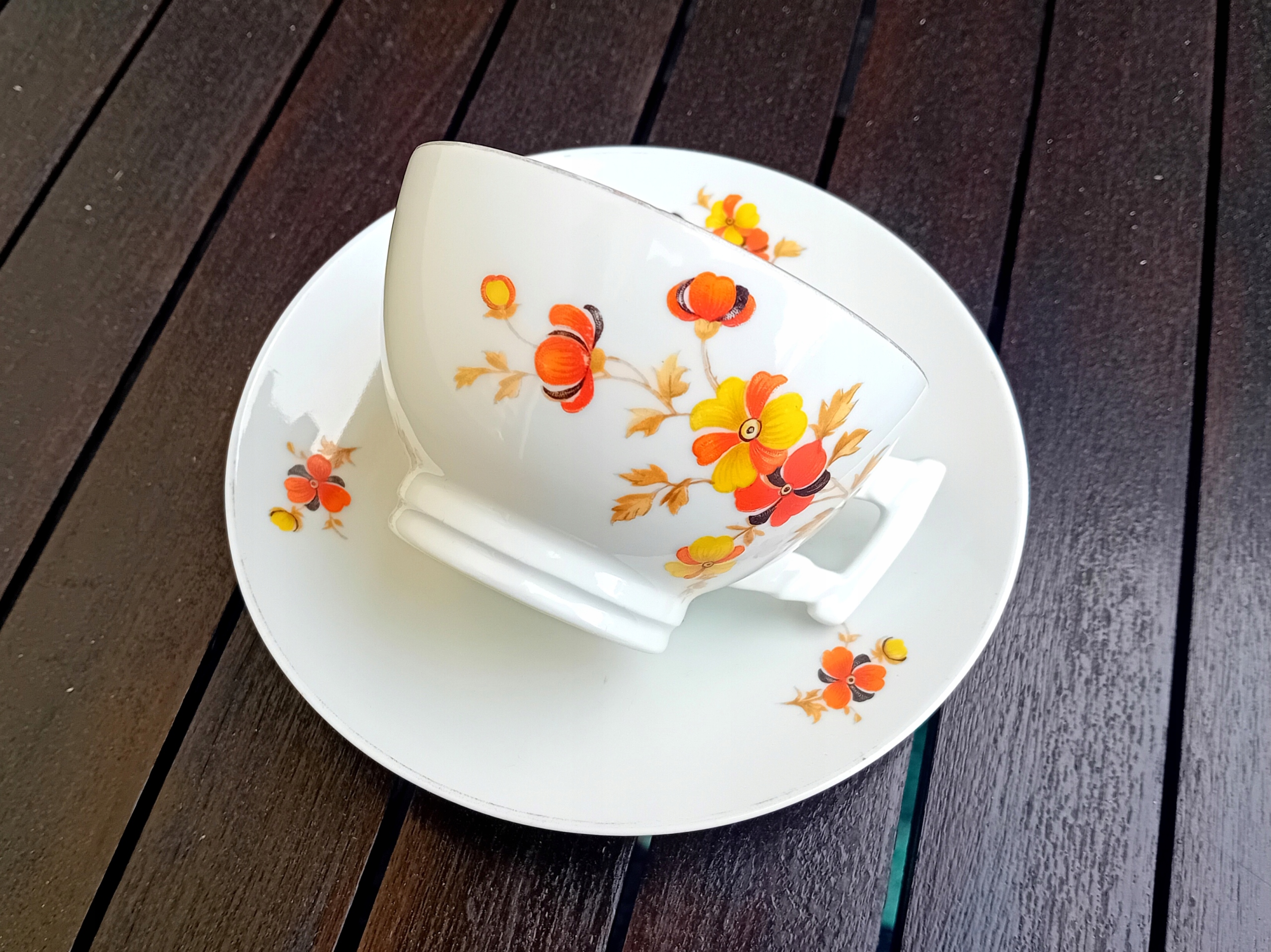 FILIŻANKA Z PODSTAWKIEM ĆMIELÓW FASON PŁASKI ART -DECO - B.WENDORF lata 30