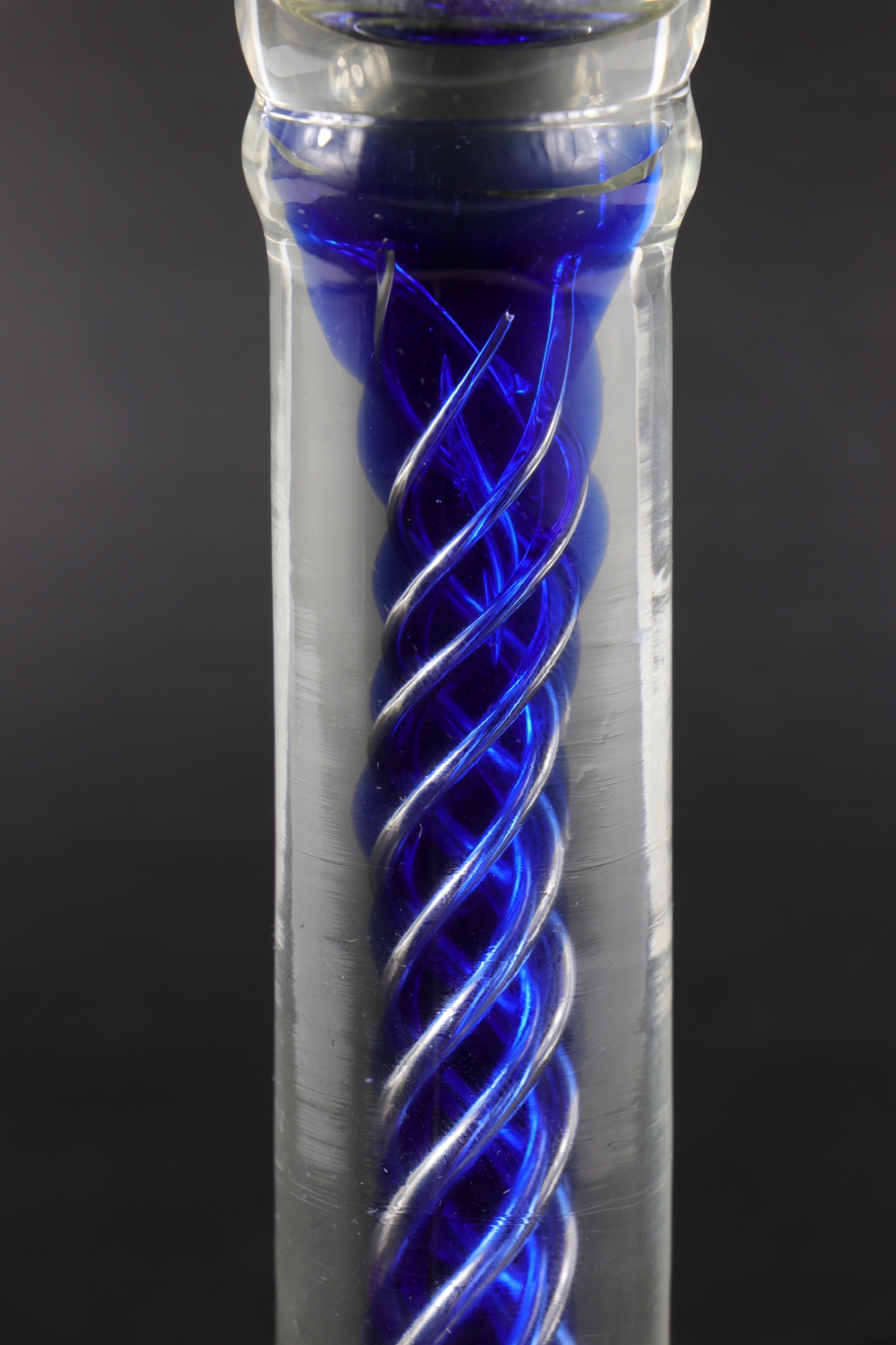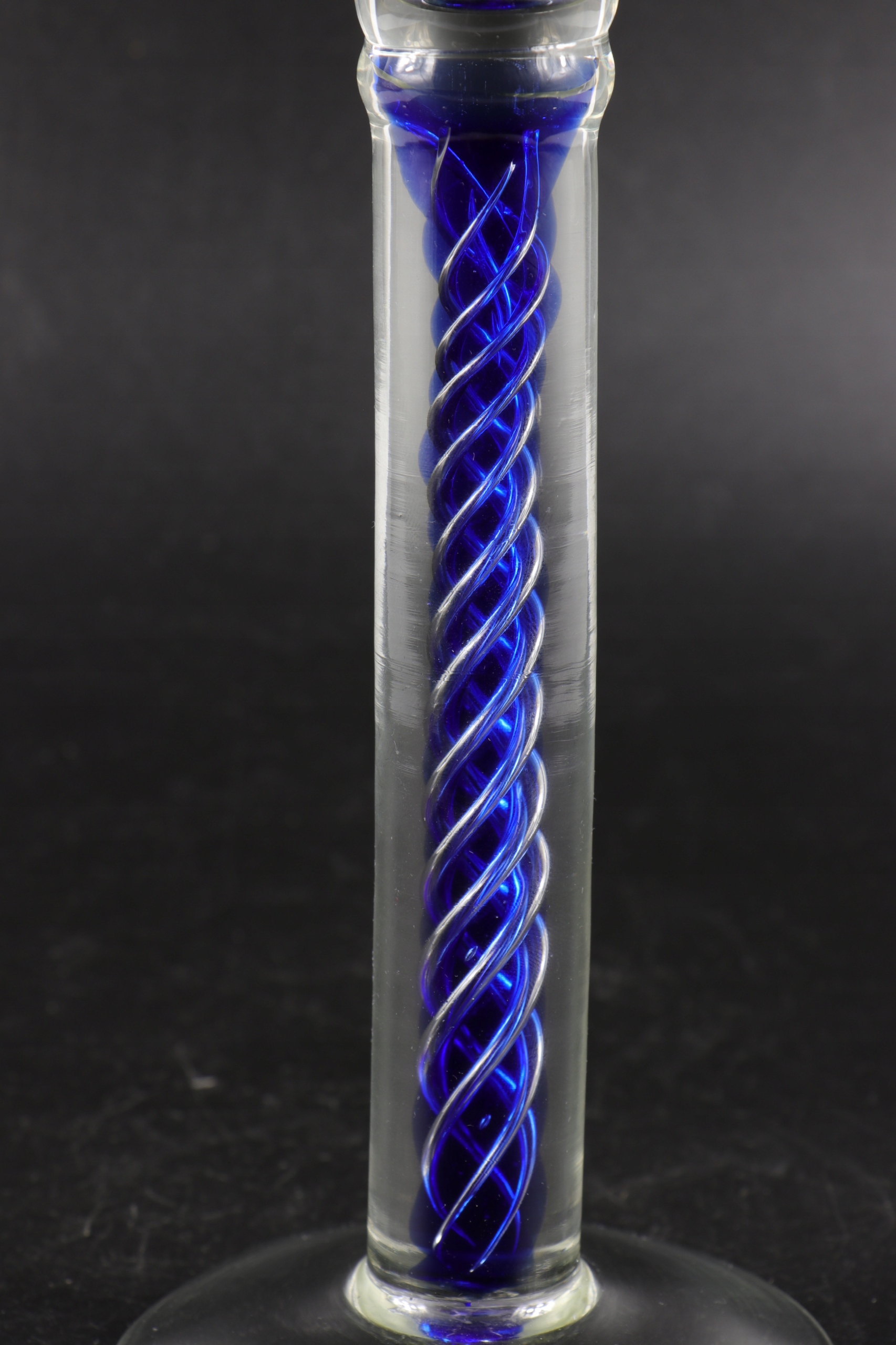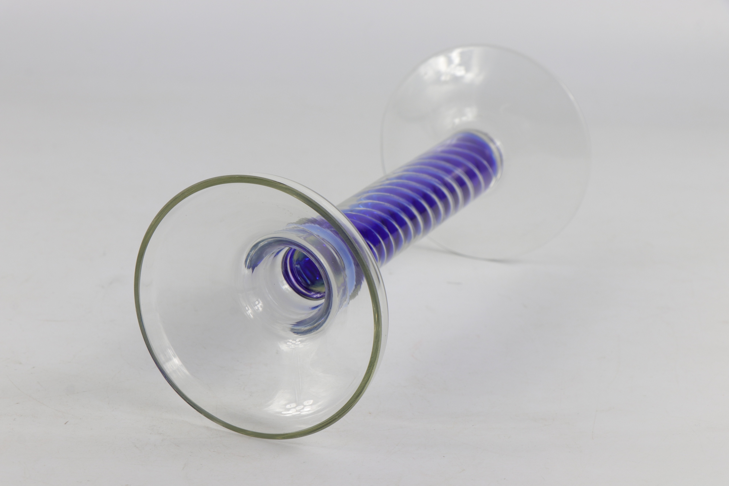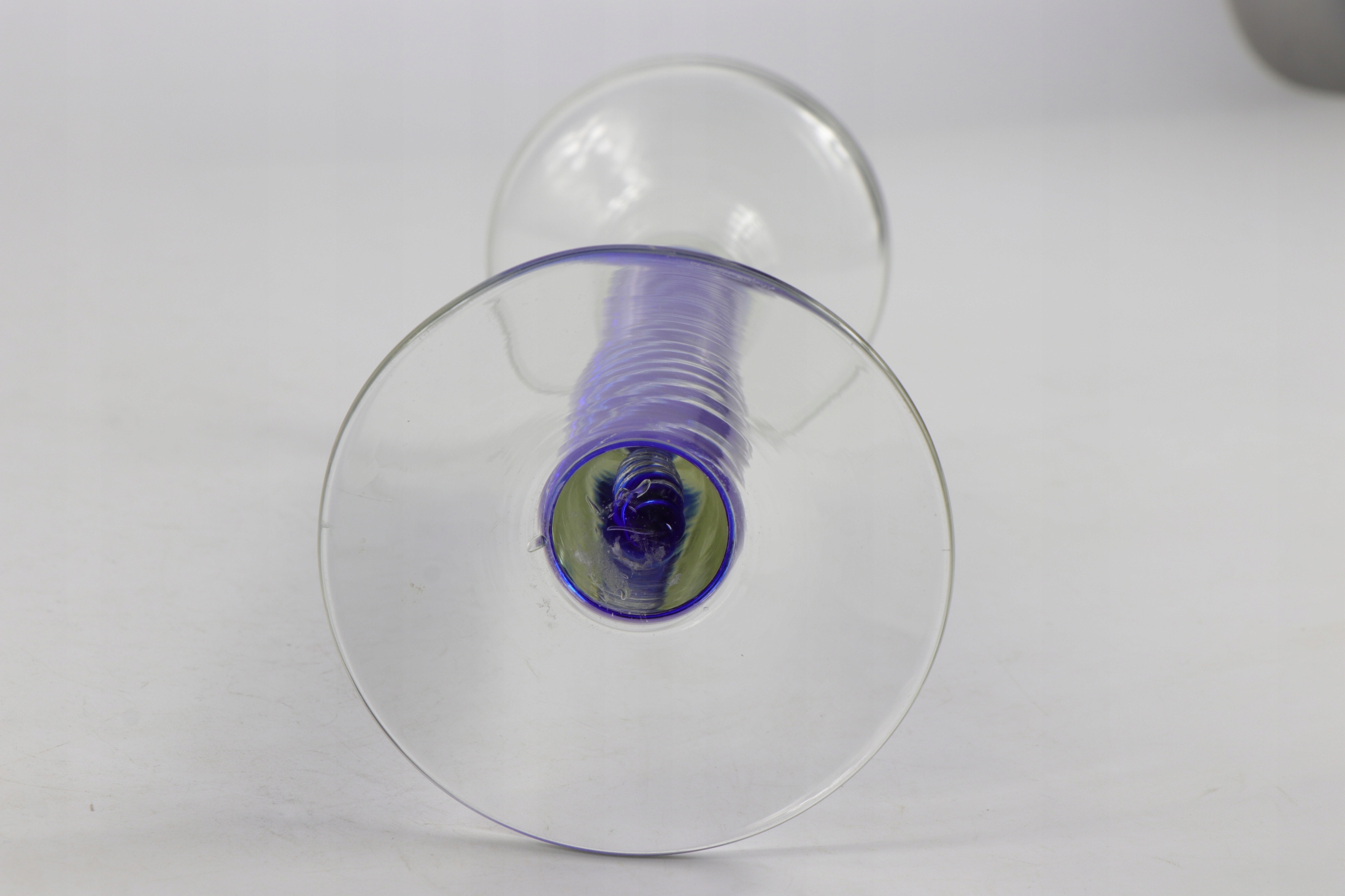 Стеклянный подсвечник с заделанной филигранной переплетенной нитью. Филигрань в массе кобальтового стекла. Подсвечник украшен выгравированной надписью villeroy & boch на основании.