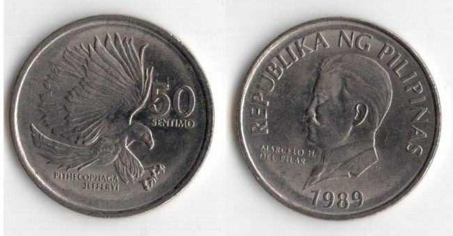ФИЛИППИНЫ 1989 50 СЕНТИМО ВАРИАЦИЯ МАЛЫЙ ПТАК