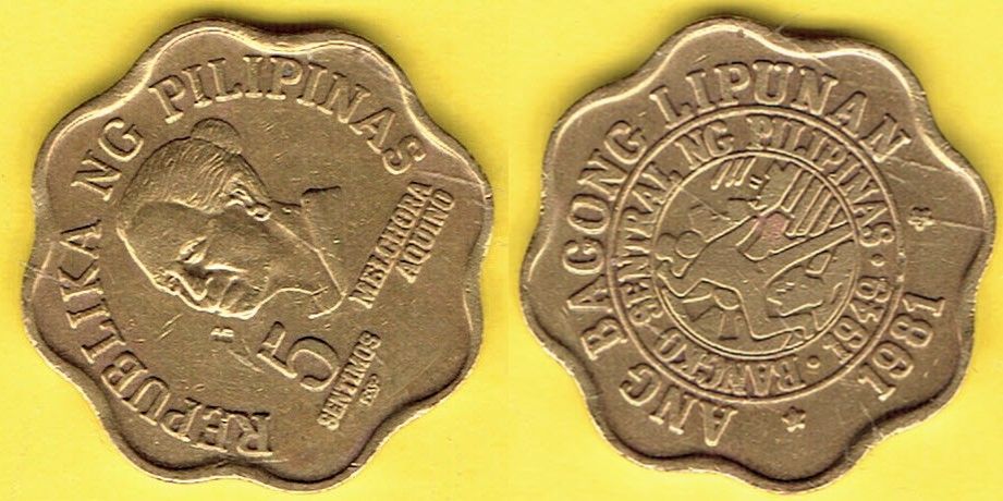 ФИЛИППИНЫ 5 сентимо 1981 года.