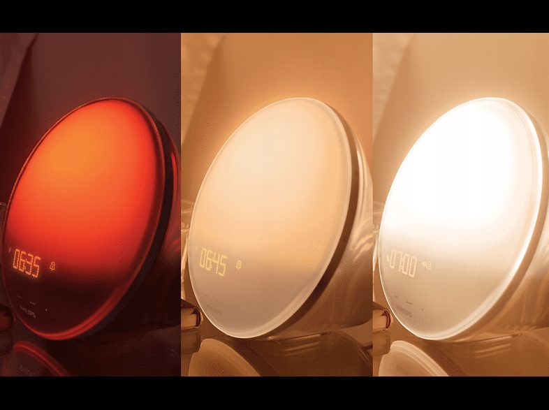Красочное моделирование восхода солнца Это медленное изменение стимулирует тело естественным образом. Наряду с светом, заполняющим комнату, естественный звук, который вы выбираете, поддерживает ваши впечатления после пробуждения, так что вы находитесь в форме в течение всего дня.
