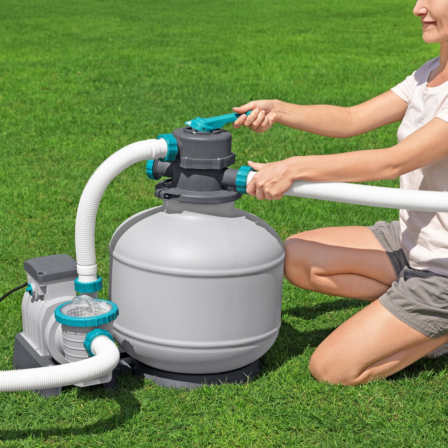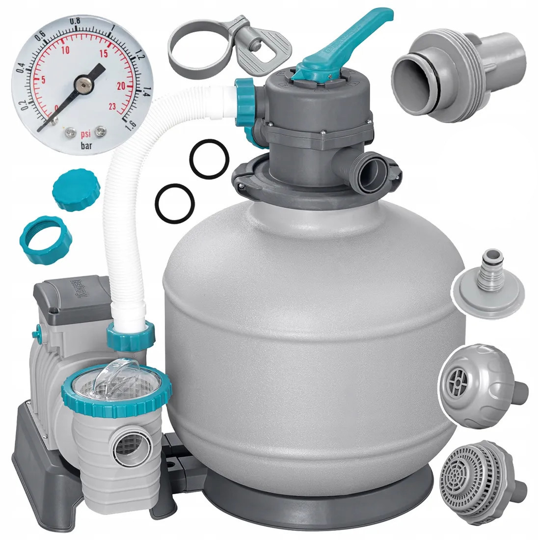 насос с песчаным фильтром посвящен для расширения и кадров, как круглых, так и прямоугольных.