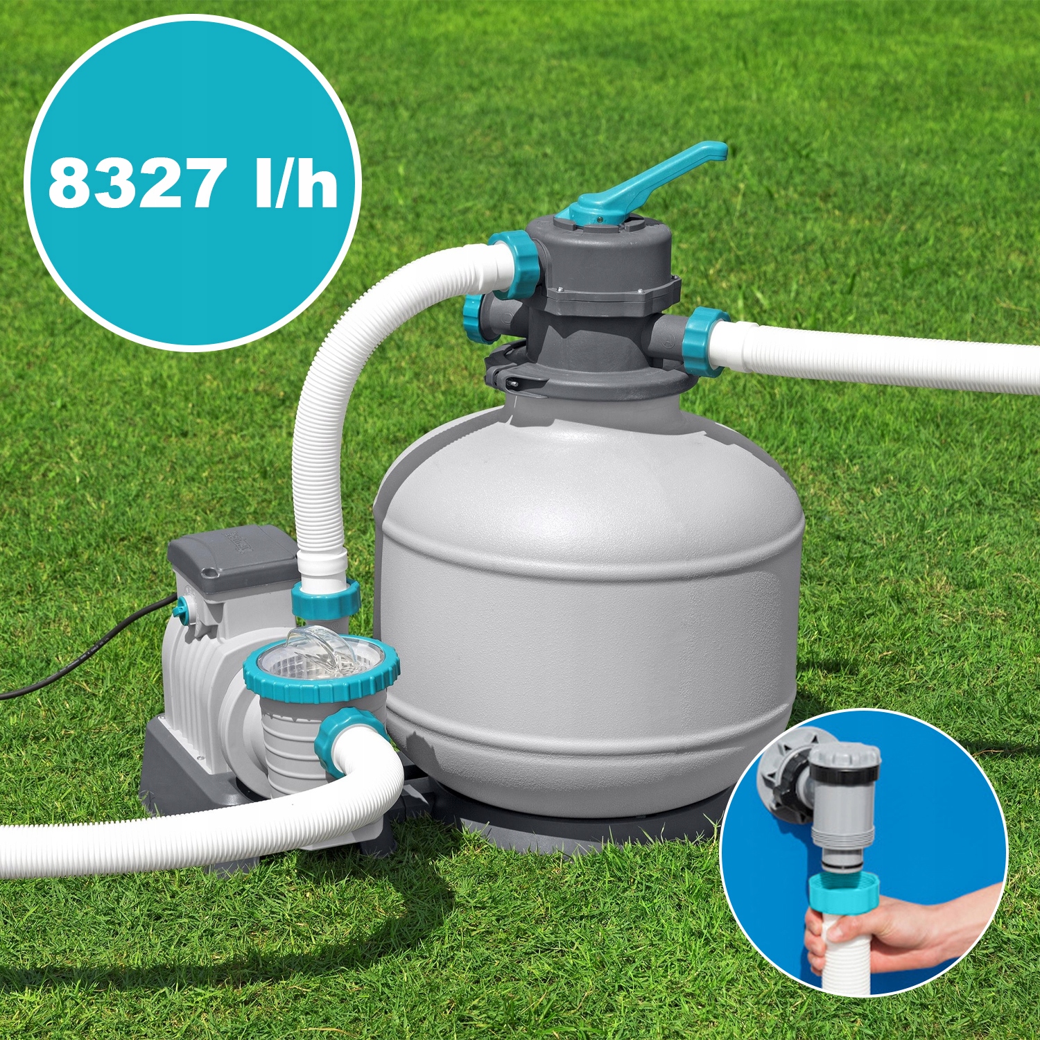 Большим преимуществом этого песчаного насоса является его мощная эффективность с потоком воды до 8327 литров b> в час. Это гарантирует кристально чистую воду, которая обеспечивает здоровье и комфорт во время купания.