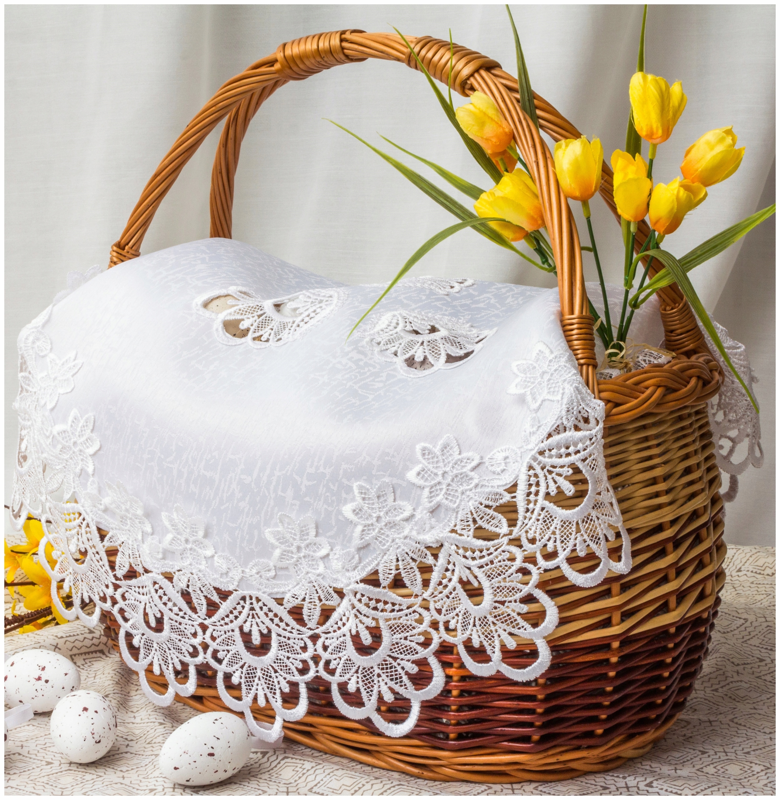 ✅ ✅chrona święconki - салфетка покрывает содержимое корзины, защищает ее от пыли, грязи и погодных условий (например, ветер или дождь). Расположен в нижней части корзины, чтобы отделить пищу от плетеных и обеспечить чистоту.