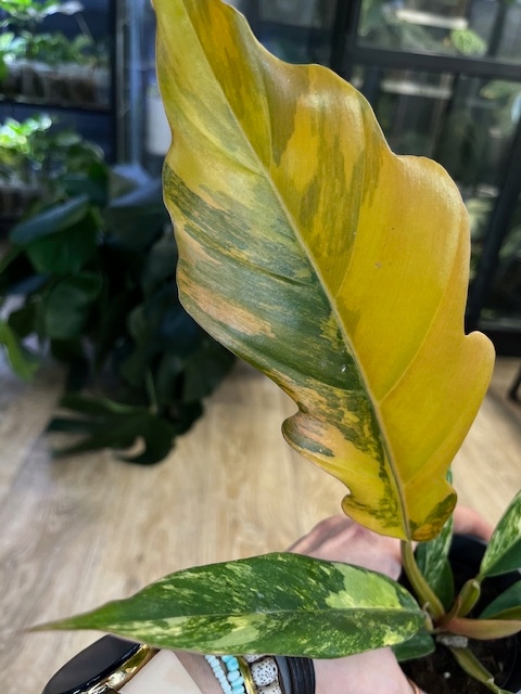 впечатляет с удивительными цветами - листья сочетают в себе оттенки карамели, зеленого, крема и абрикоса для любителей филодендронов и редкого варигата.