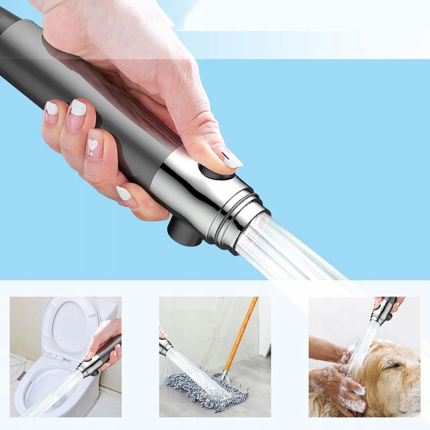 - В душевой насадке используется усовершенствованная функция автоматической блокировки и решение одной кнопкой.