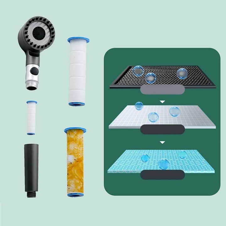 - Встроенный фильтр, утолщенный картридж 5 микрон, глубокая фильтрация, не влияет на давление воды, может эффективно уменьшать остаточные загрязнения в воде, такие как тяжелые металлы и хлор.